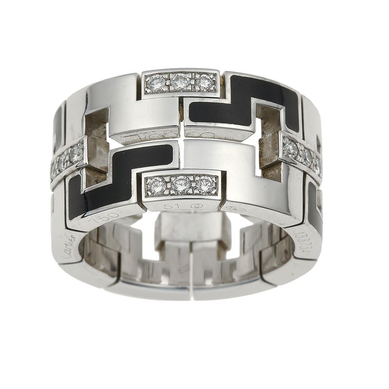 Diamond and enamel "Le Baiser du Dragon" ring. Signed Cartier n. 13373A. Fitted case