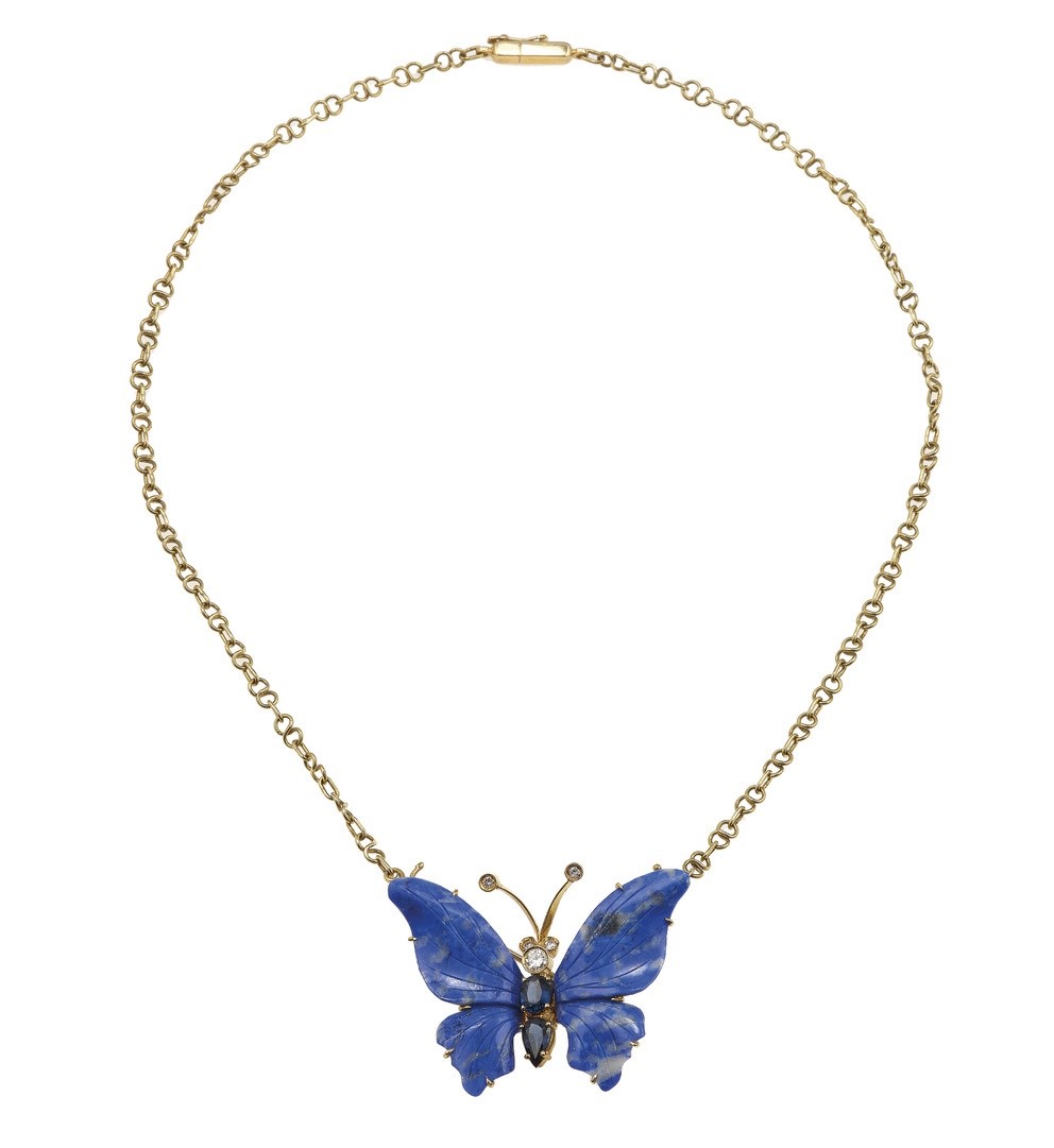 Sodalite, sapphire and diamond necklace