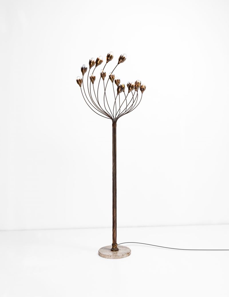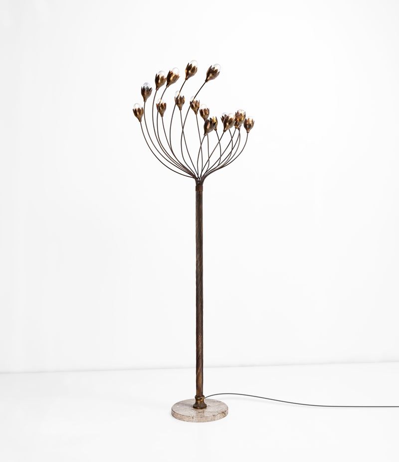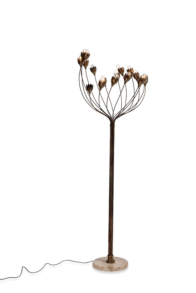Struttura in ottone lavorato e base in marmo.