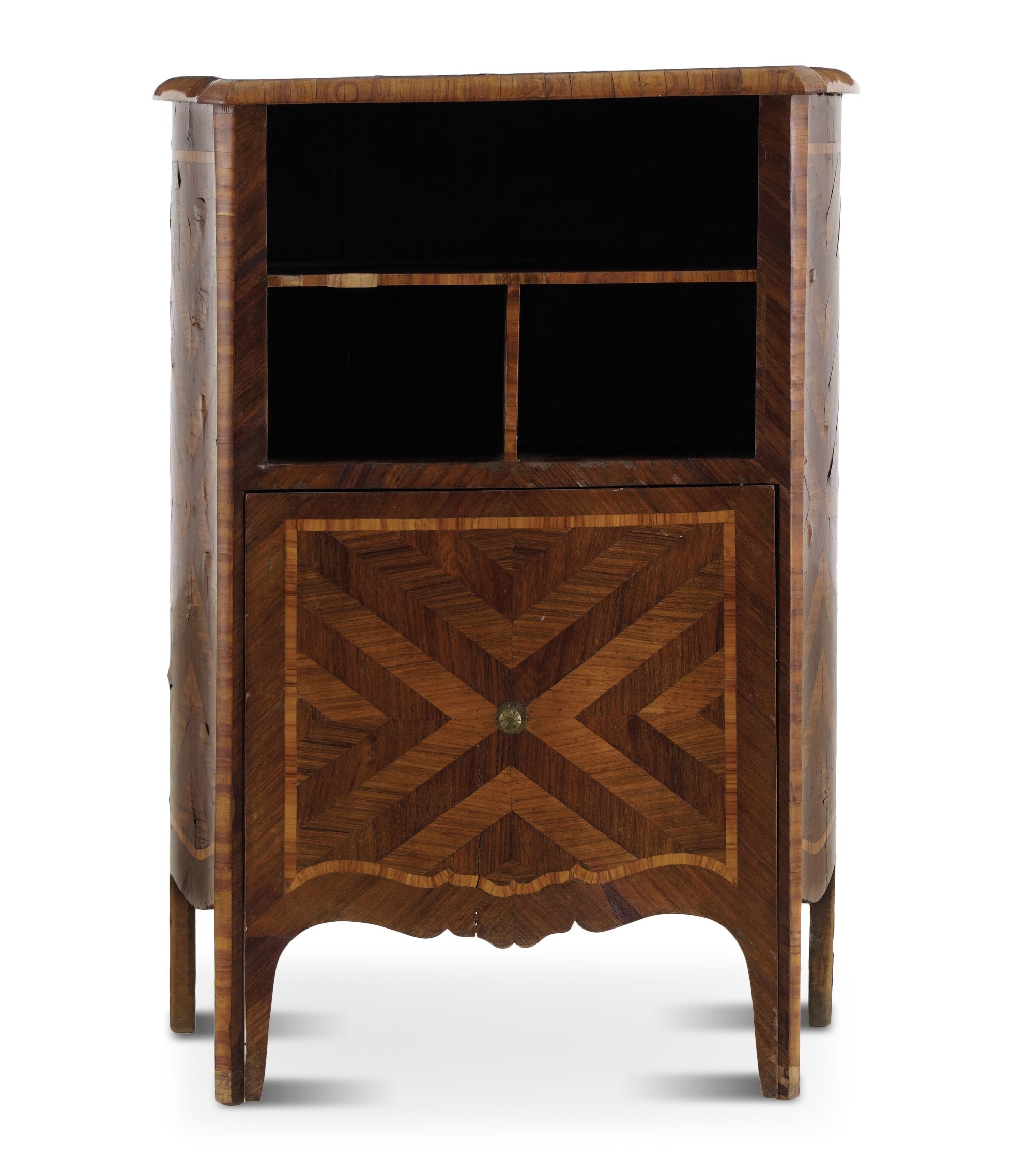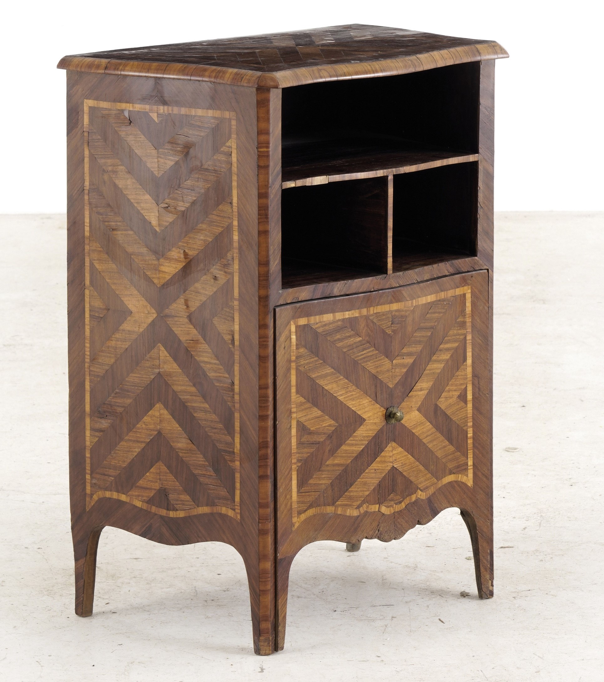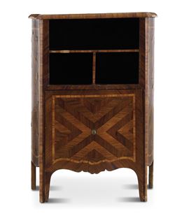 Comodino Luigi XV lastronato ed intarsiato. XVIII secolo