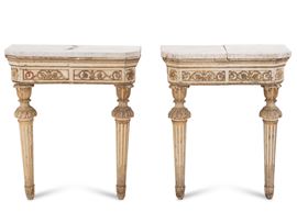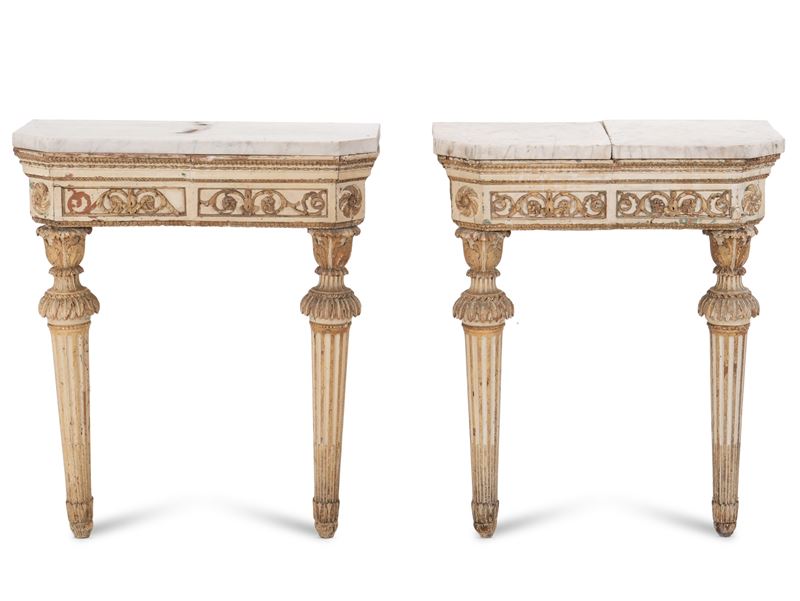 Legno laccato e intagli dorati, gambe rastremate e scanalate
