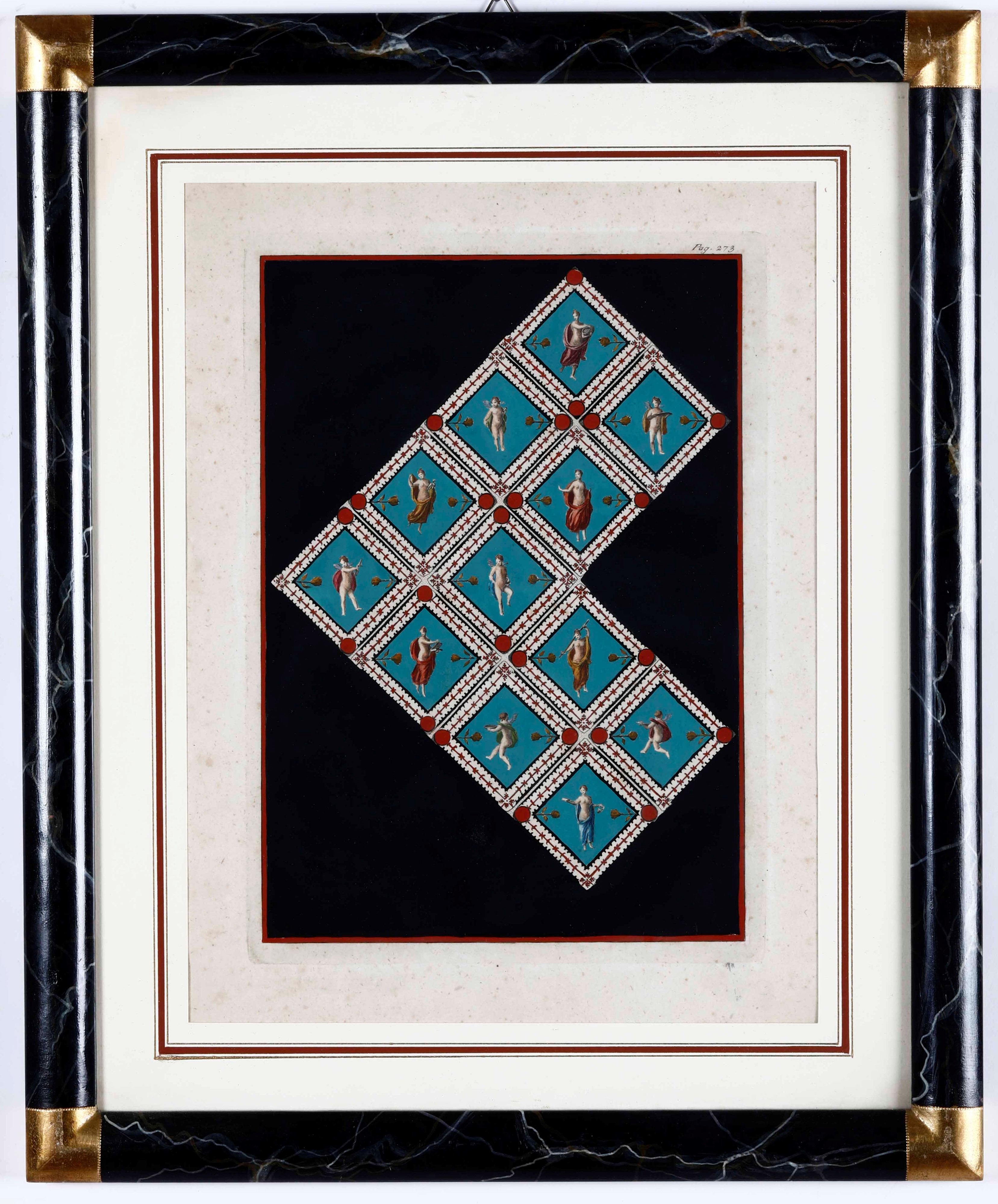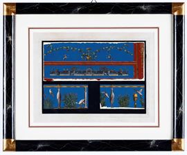 Due incisioni acquarellate con soggetti pompeiani. XIX secolo