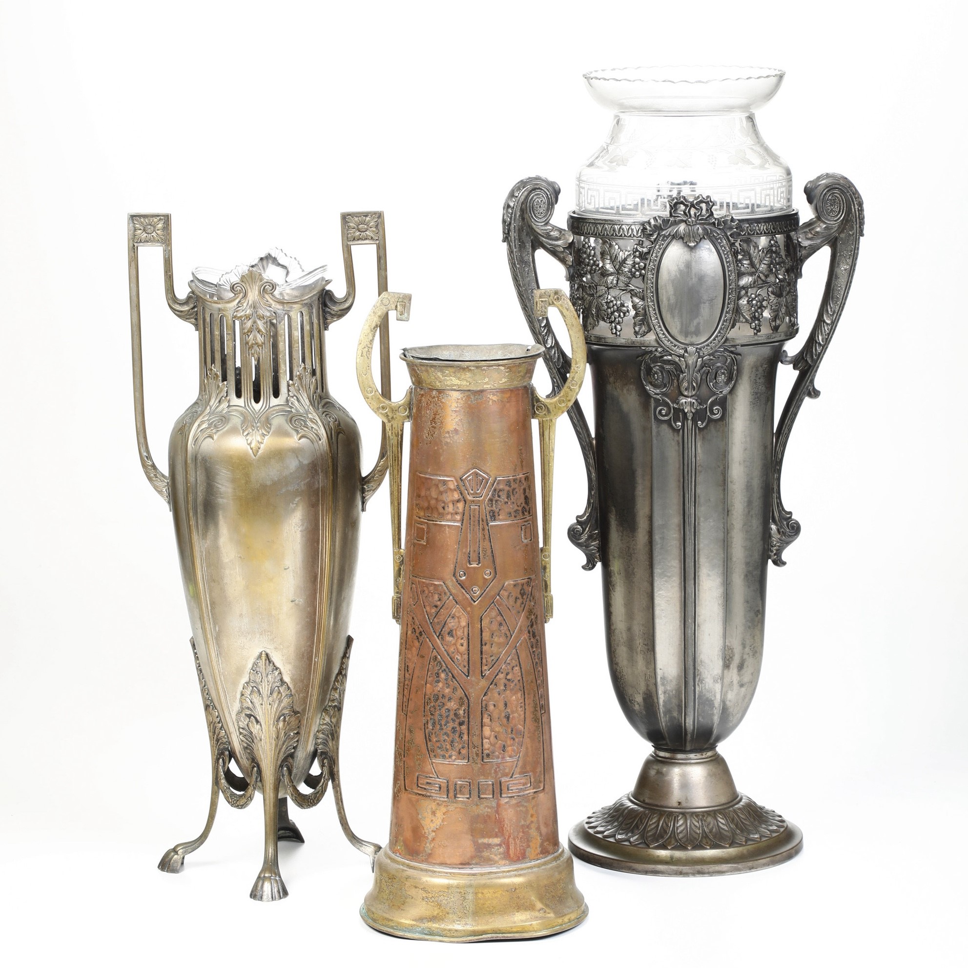 Lotto di tre vasi liberty di cui due con vetro e firmati