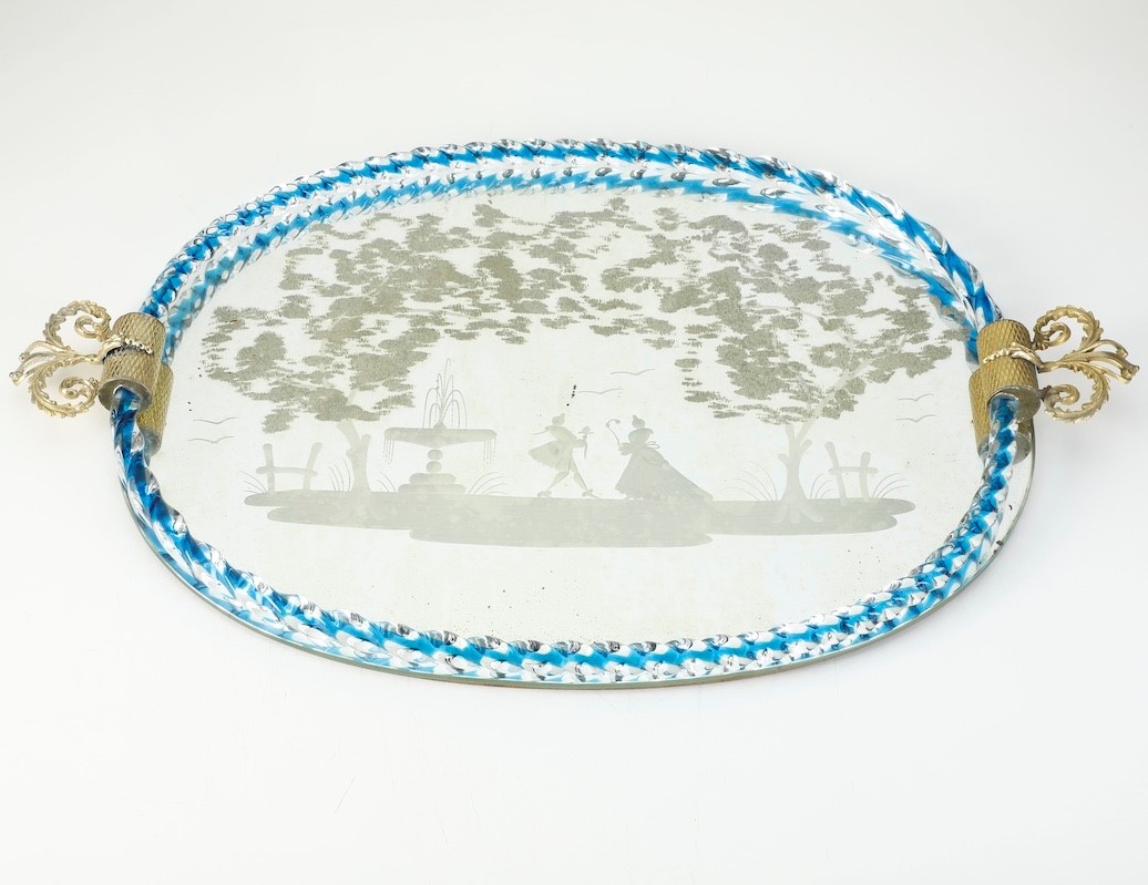 Presentoire a specchio con cornice in vetro Murano. XX secolo