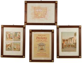 Quattro stampe moderne raffiguranti scavi di Pompei