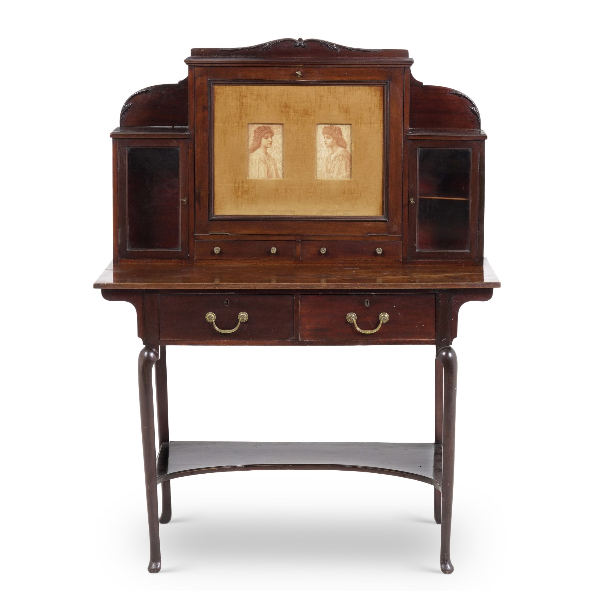 alzata con anta centrale decorata con ritratti di stile preraffaellita