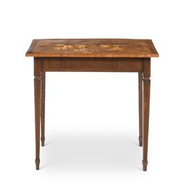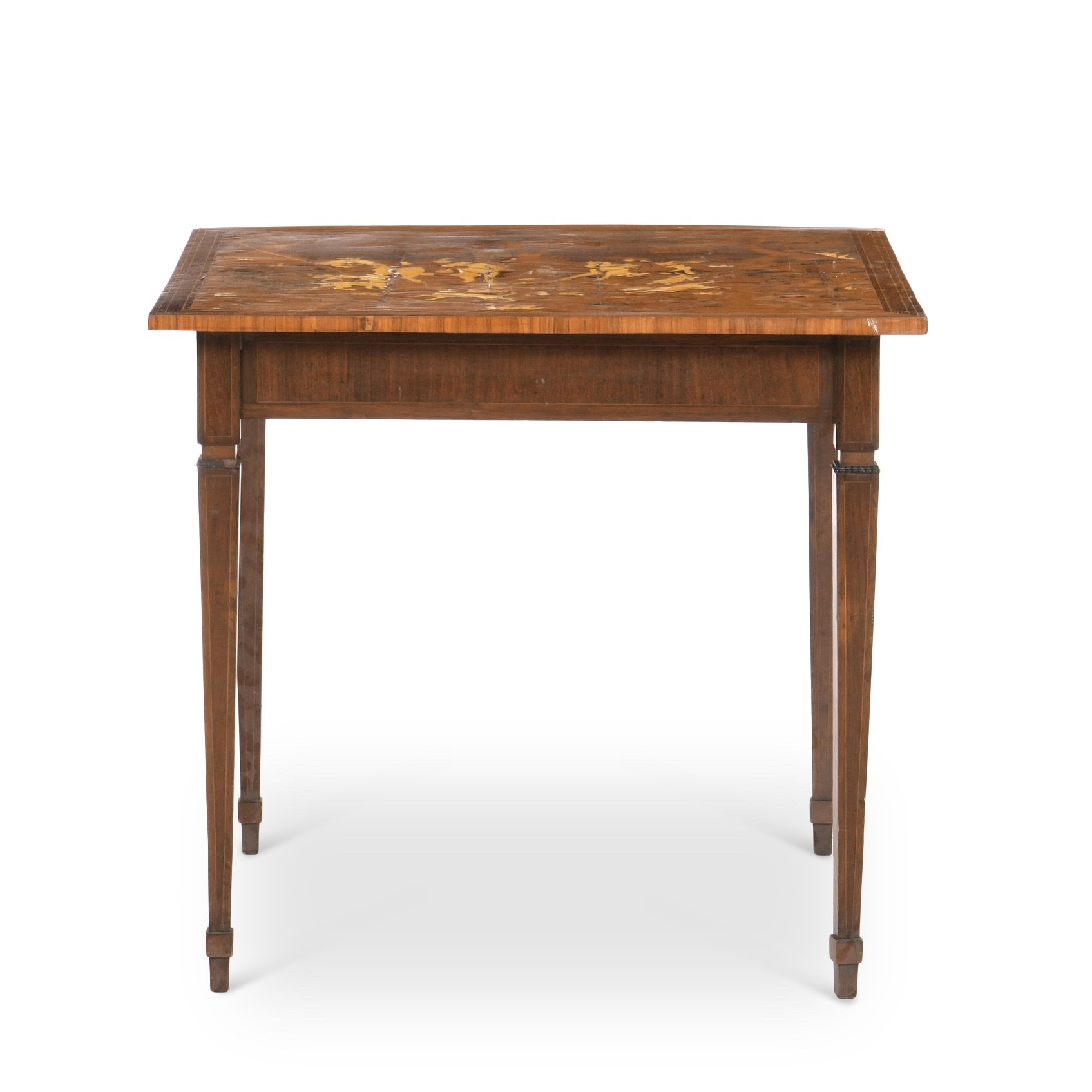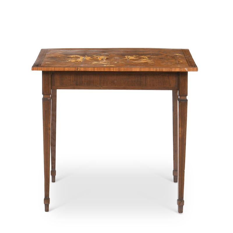 Tavolo lastronato con piano intarsiato. XIX secolo