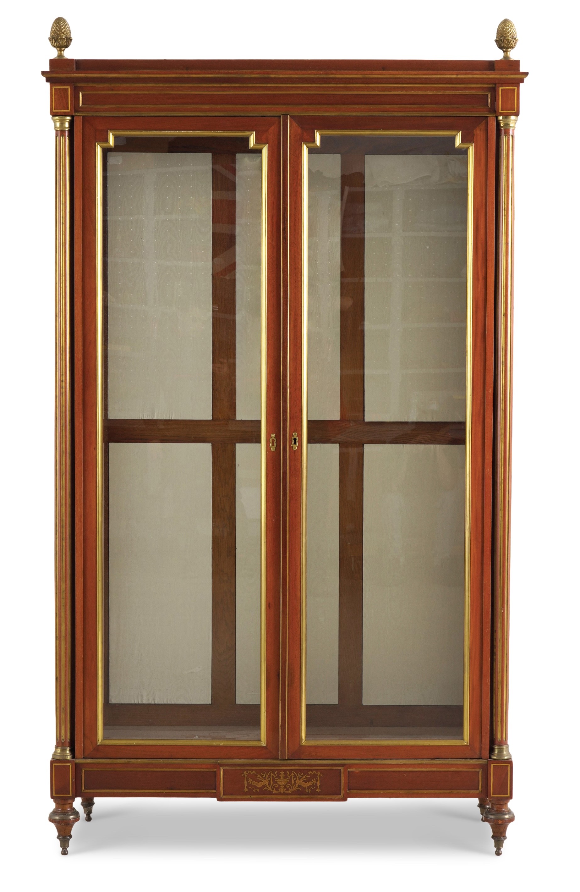 Vetrina in mogano con filetti in ottone dorato e fascia con intarsio centrale, Russia XIX secolo
