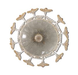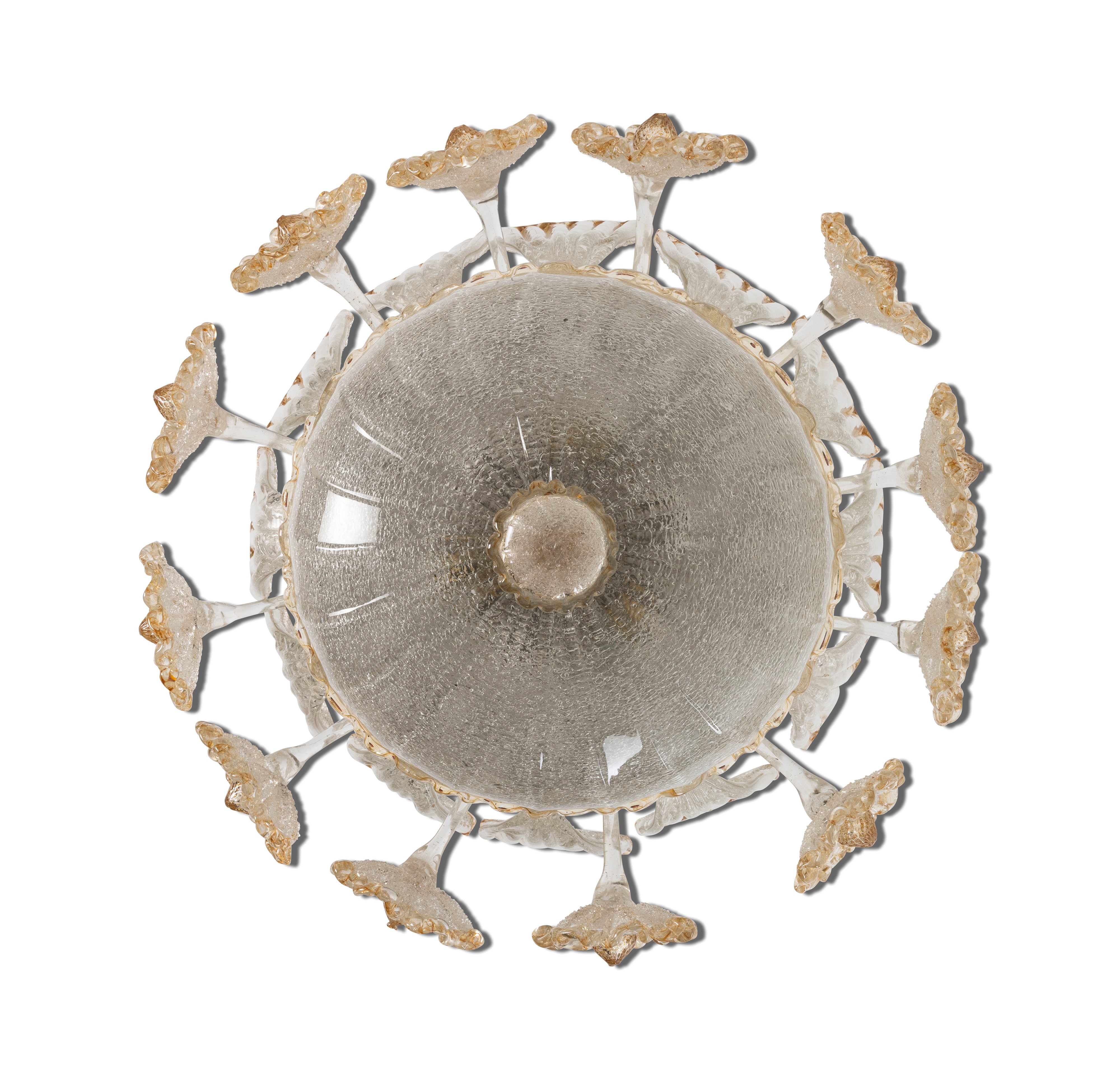 Struttura in metallo e in vetro di Murano Rugiada con elementi in vetri a foglia oro.