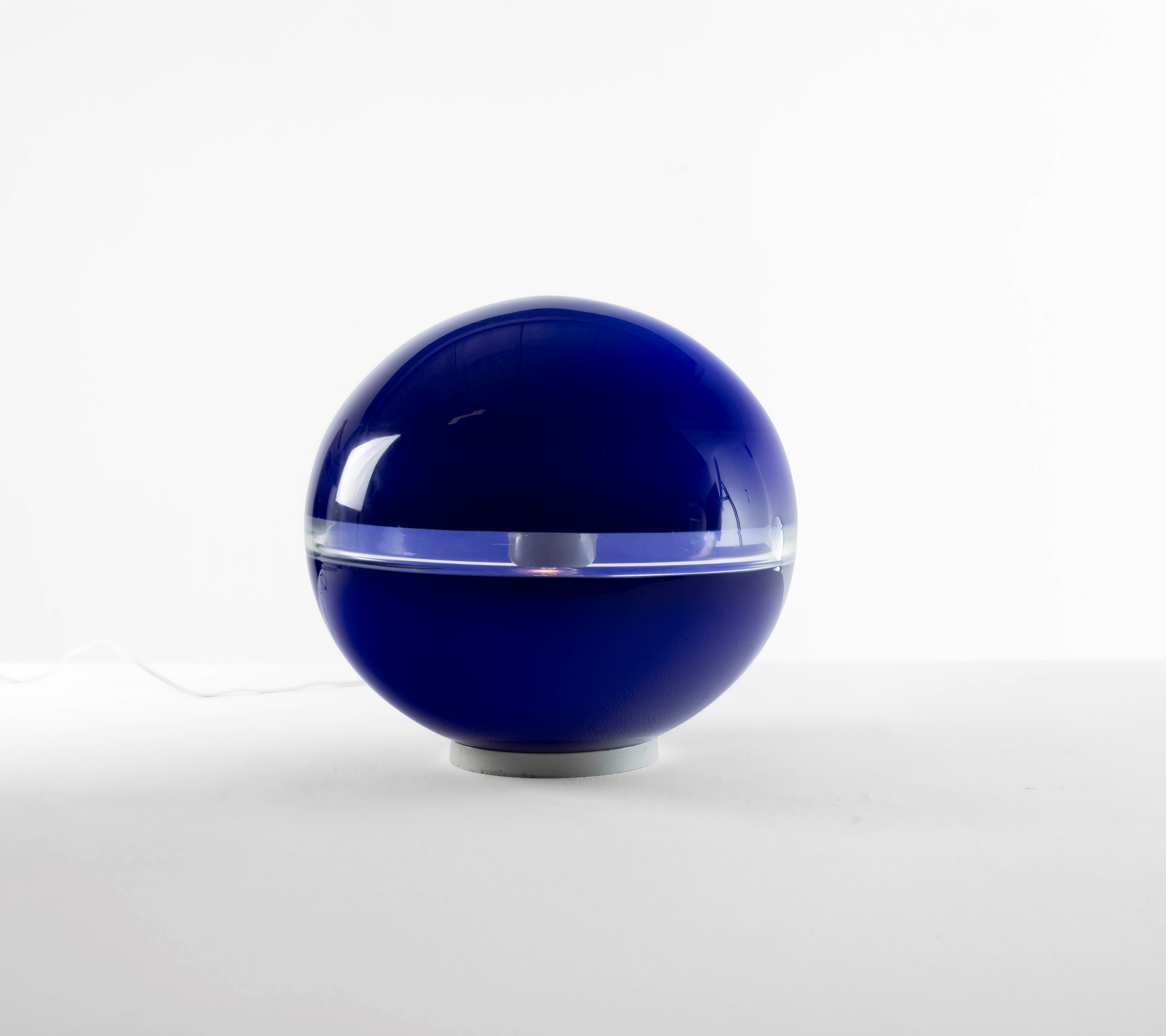 Struttura in vetro di Murano colorato e cristallo con base in metallo.
