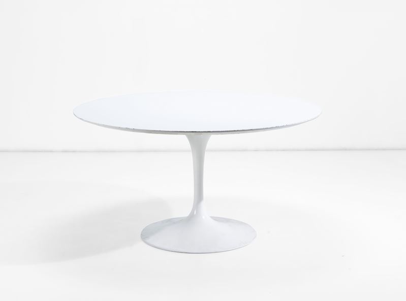 Base in fusione di alluminio ricoperto di materiale plastico e piano in legno.