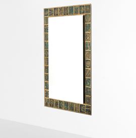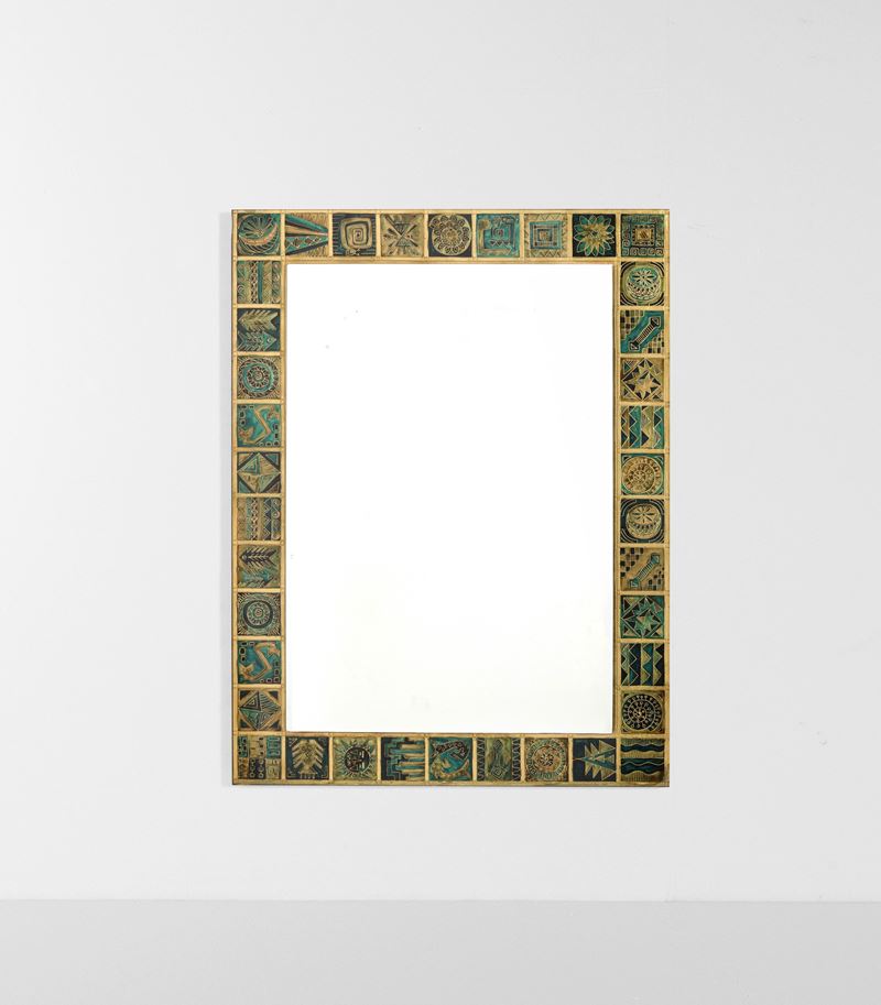 Struttura in legno, cornice in cristallo retrodipinto e cristallo specchiato.