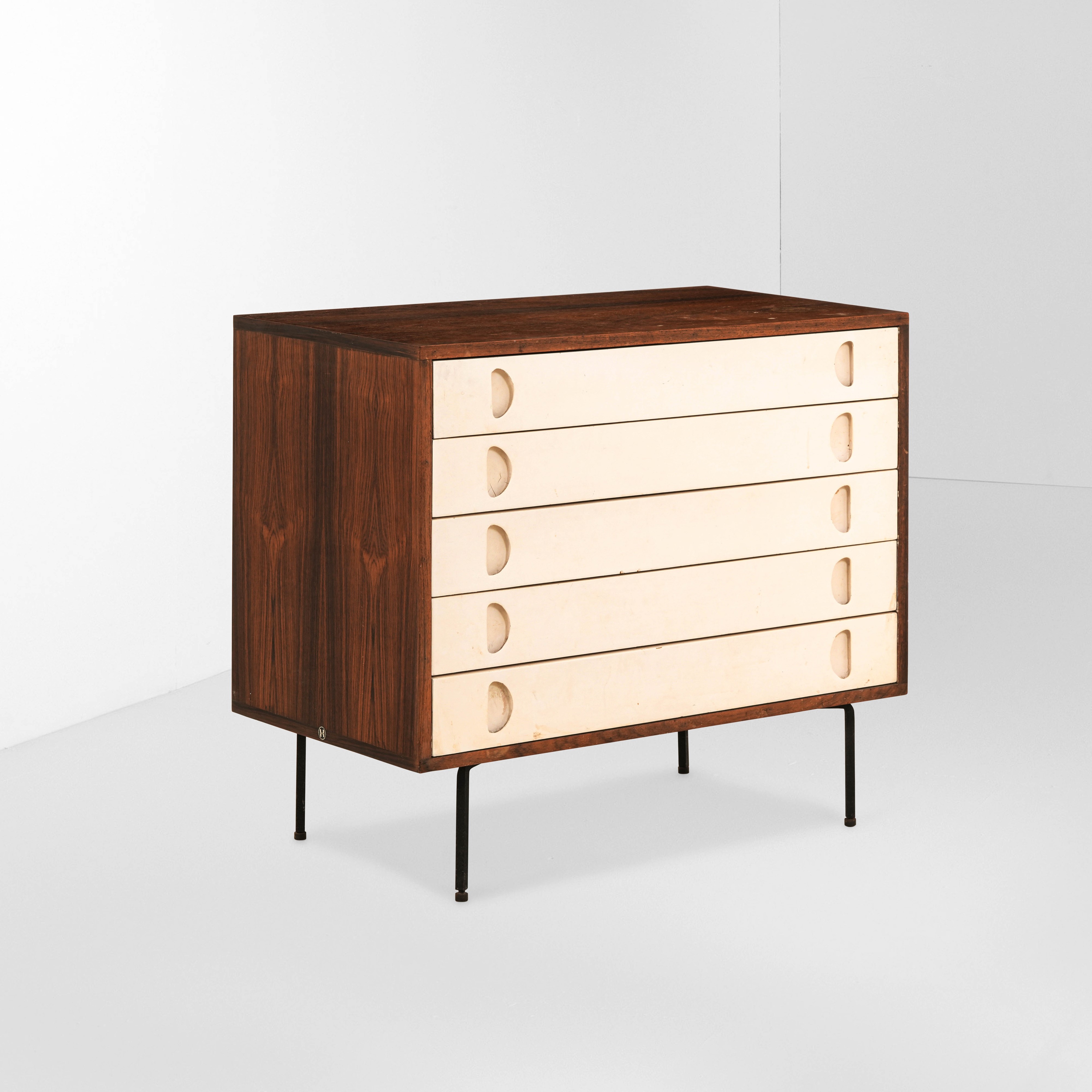 Struttura in legno e cassetti in legno laccato.