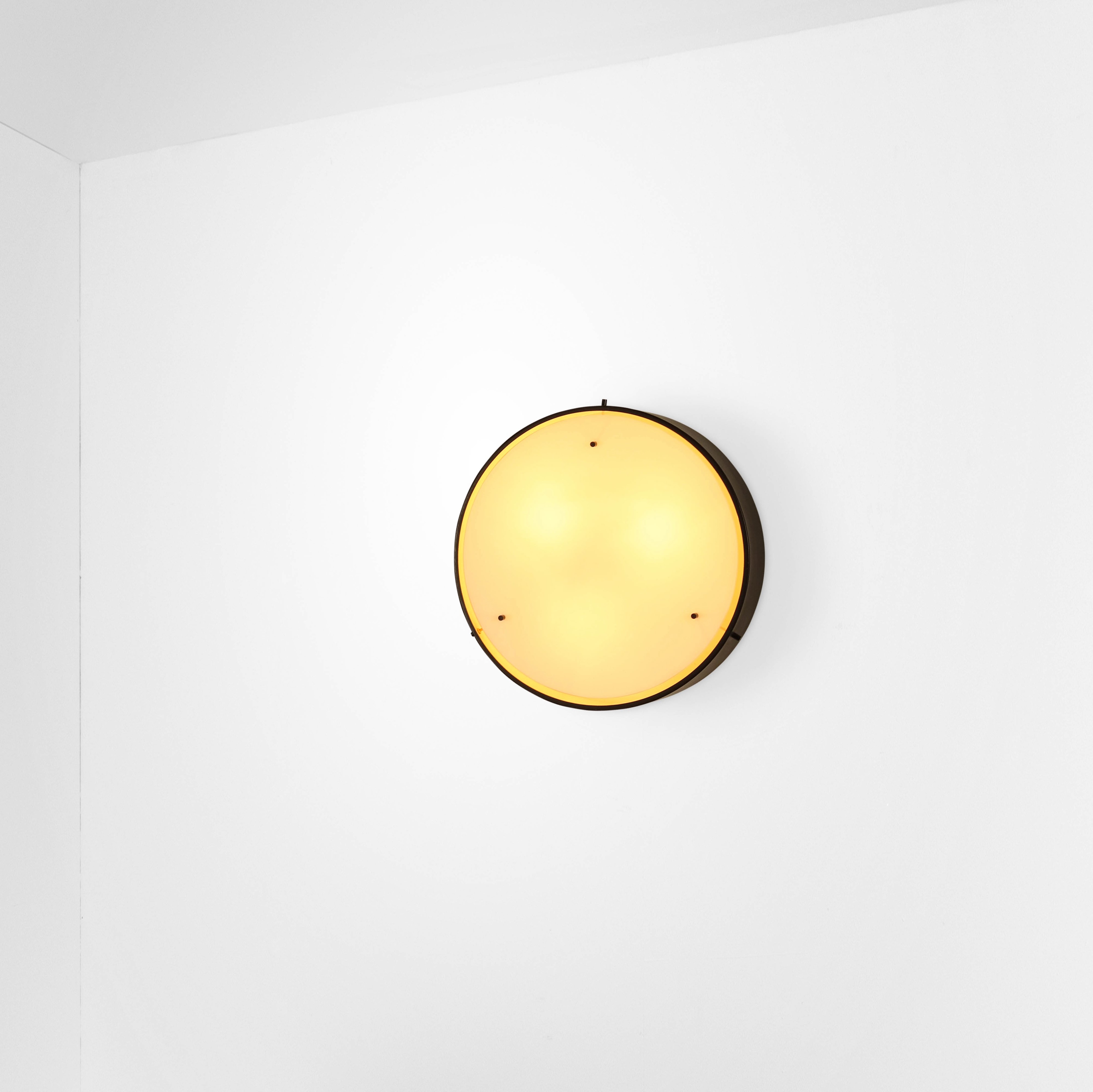 Struttura in alluminio laccato e ottone. Diffusori in vetro satinato.