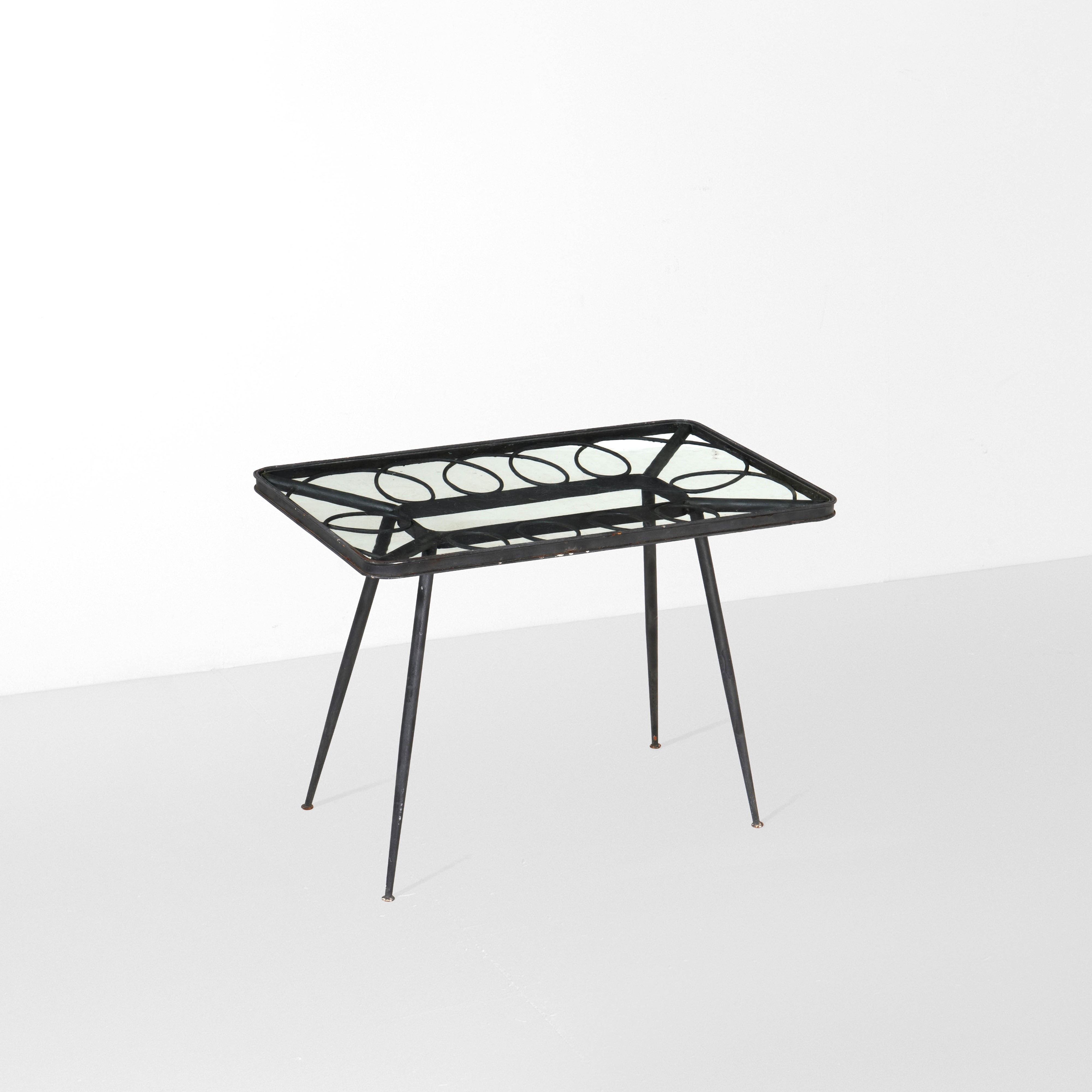 Struttura in tubolare di ferro laccato e piano in vetro.
