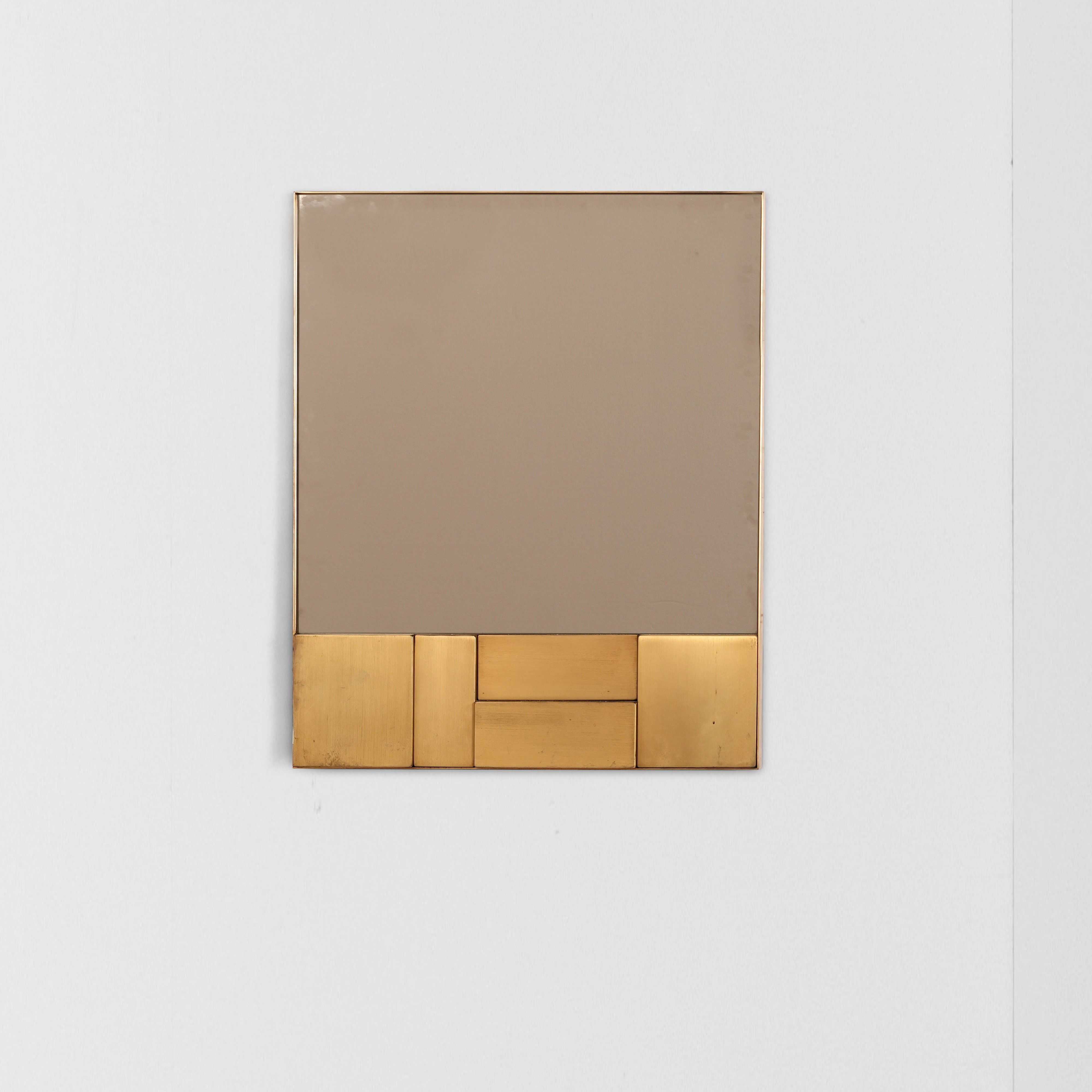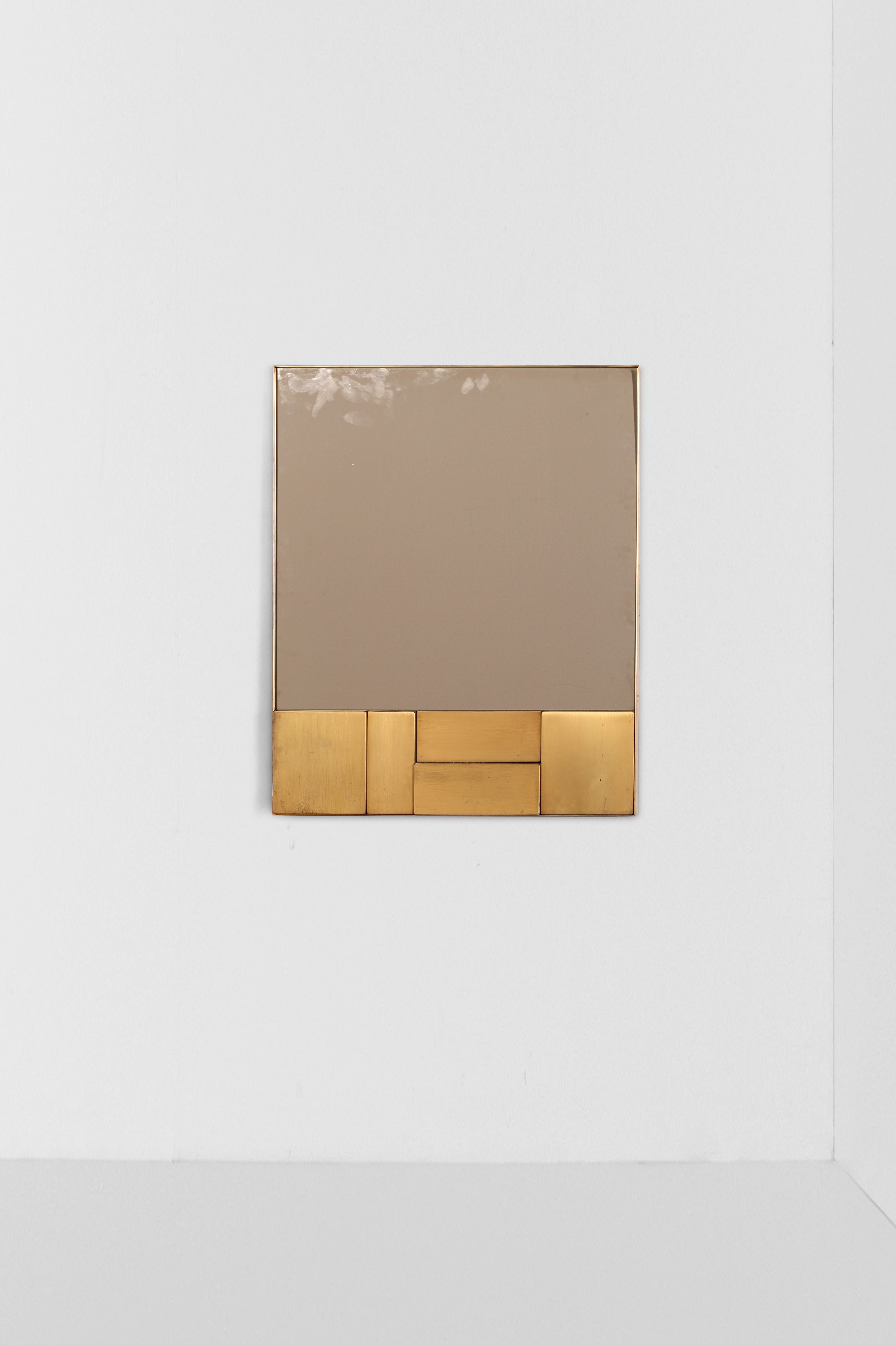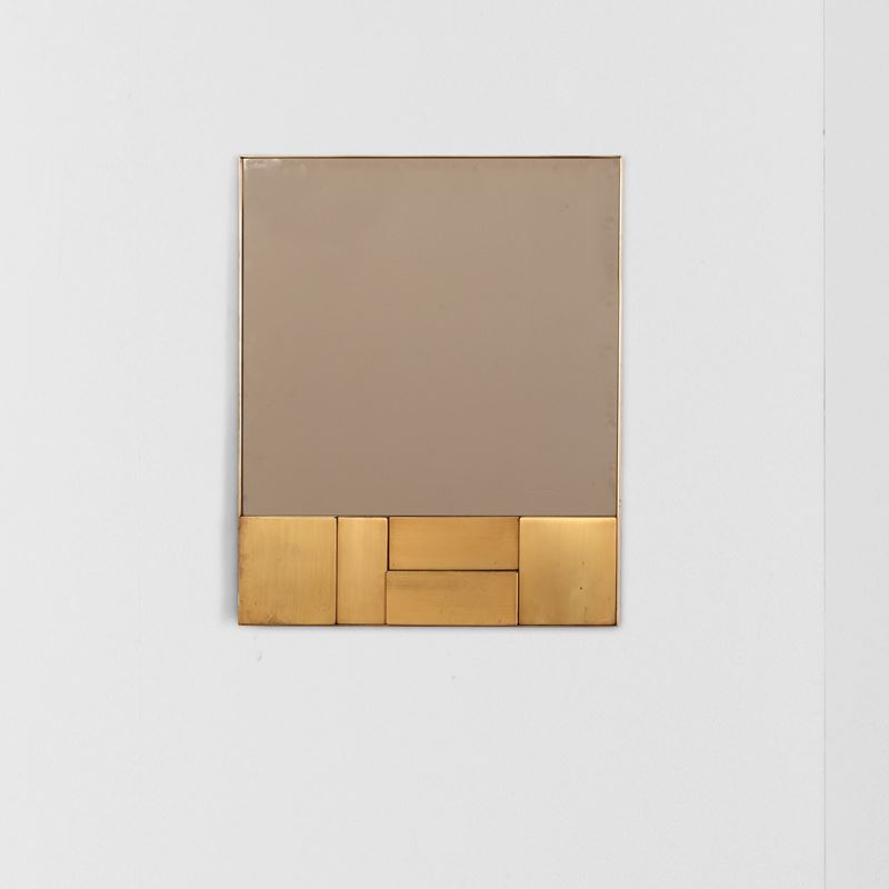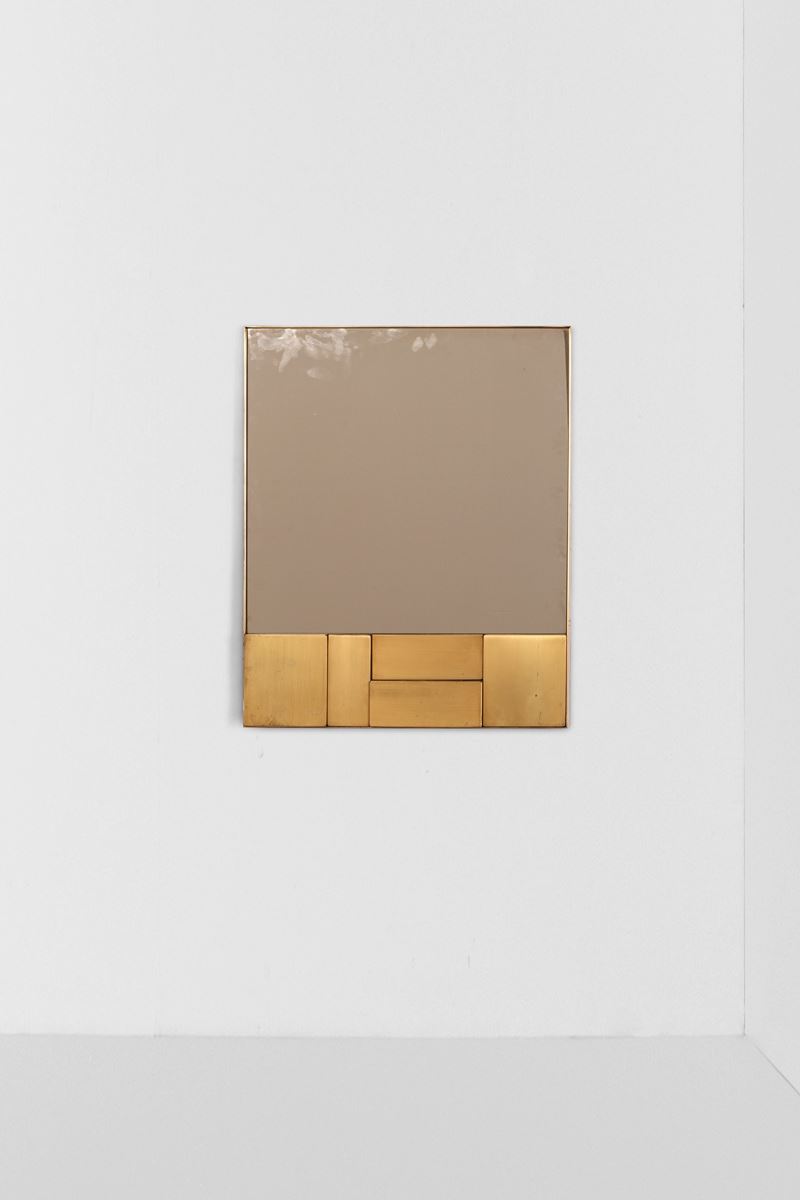 Cornice in ottone e cristallo specchiato.