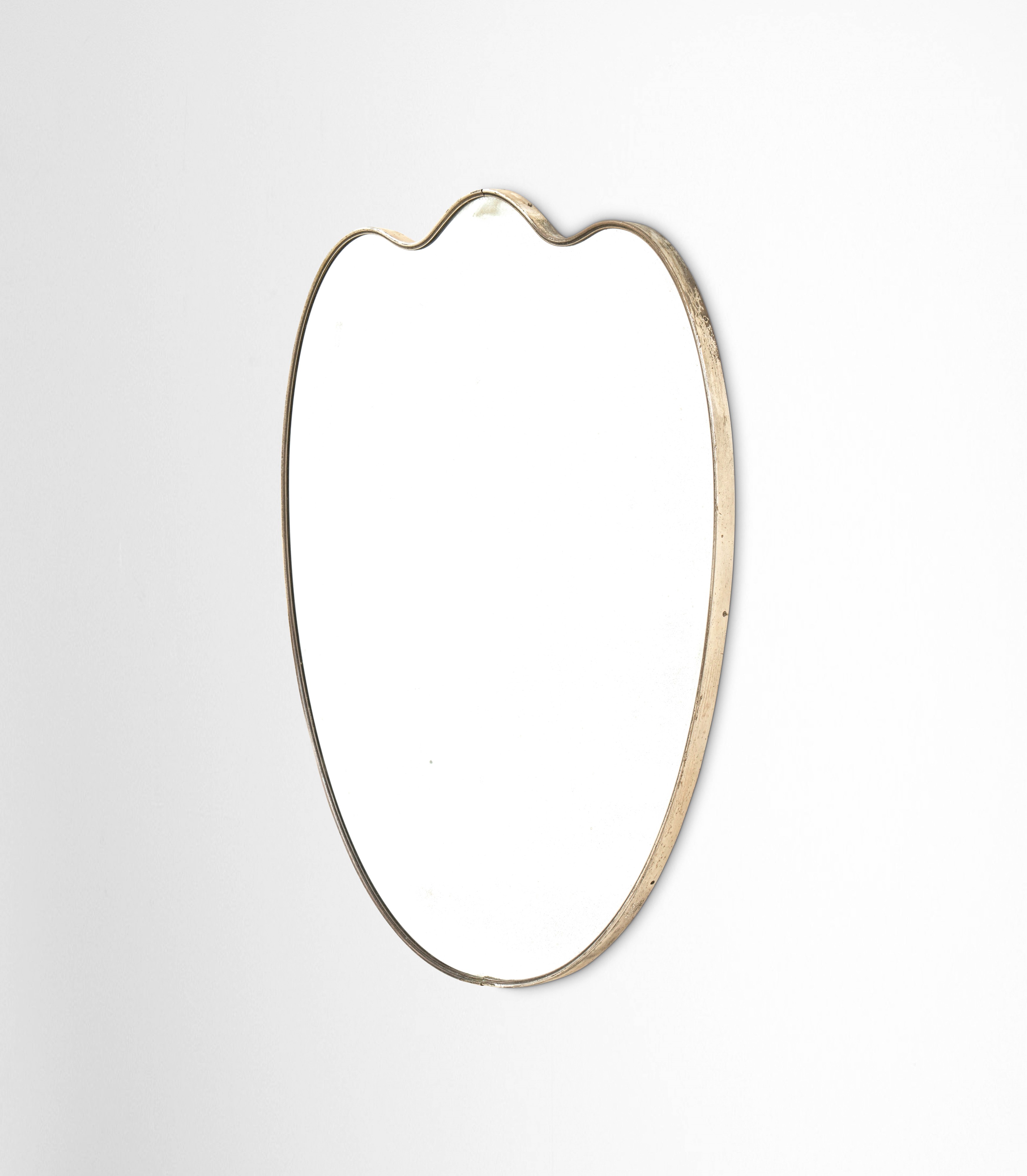 Cornice in ottone e cristallo specchiato.