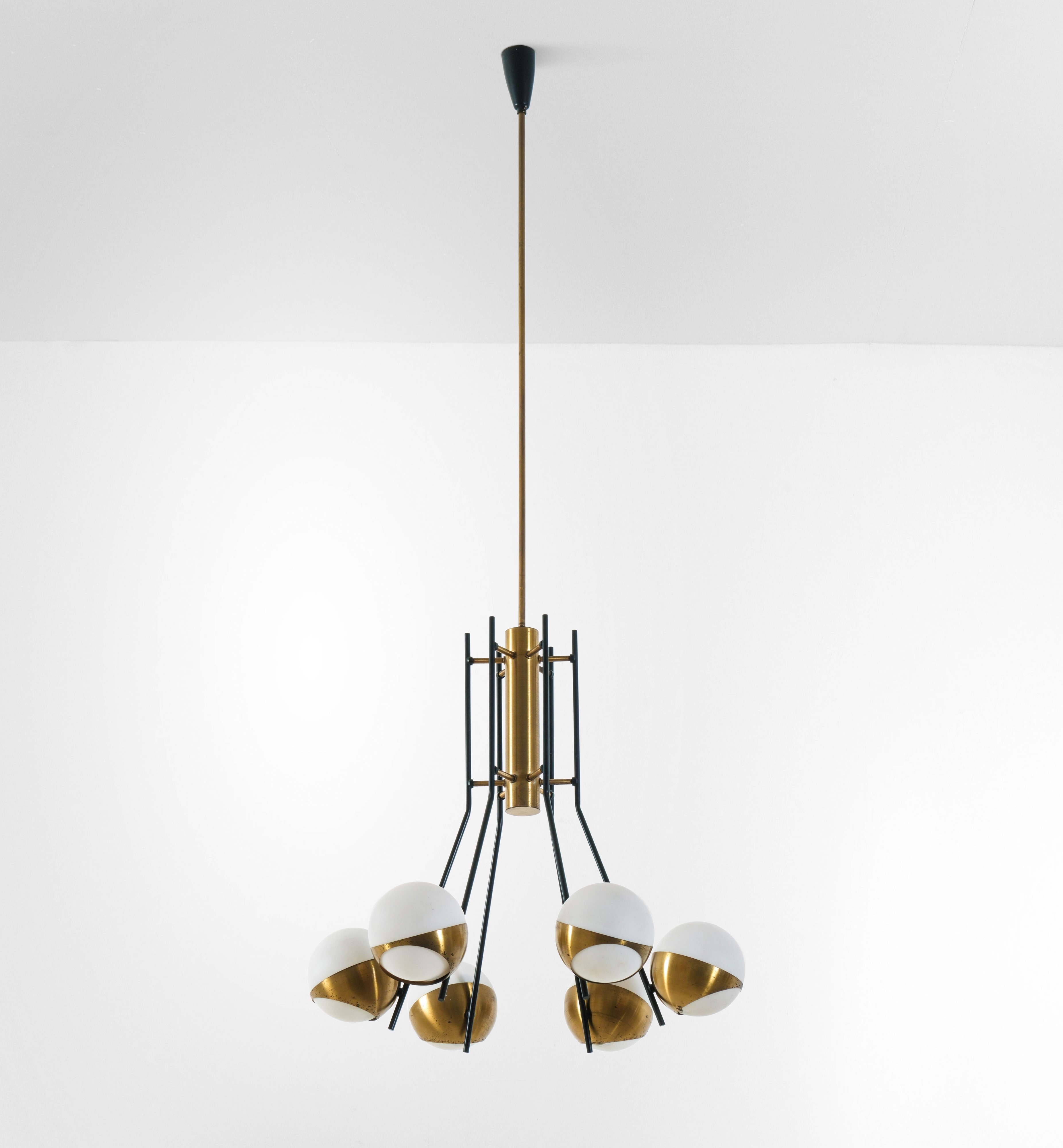 Struttura in ottone e metallo laccato.