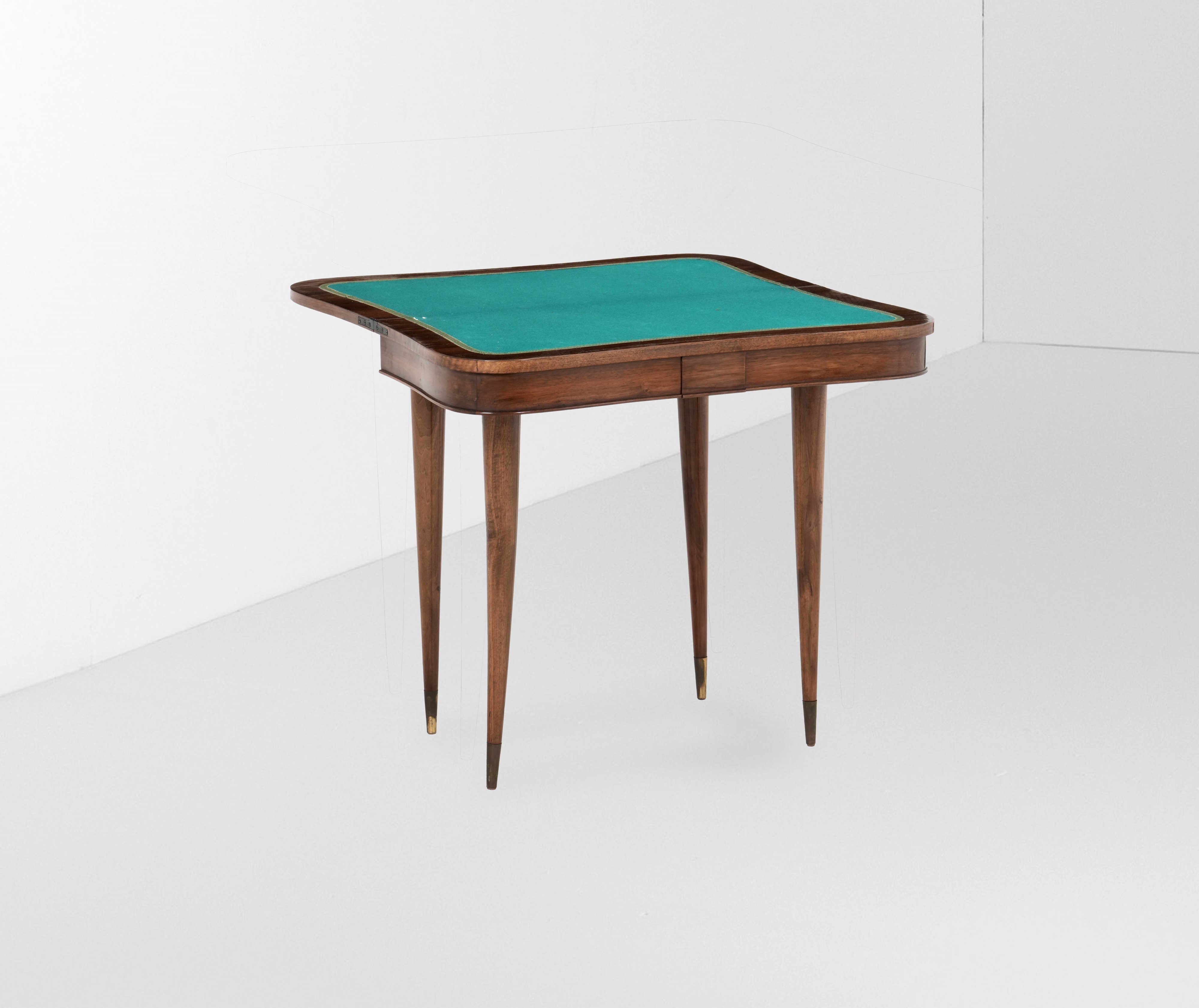 Struttura in legno con puntali in ottone. Piano da gioco rivestito in panno.