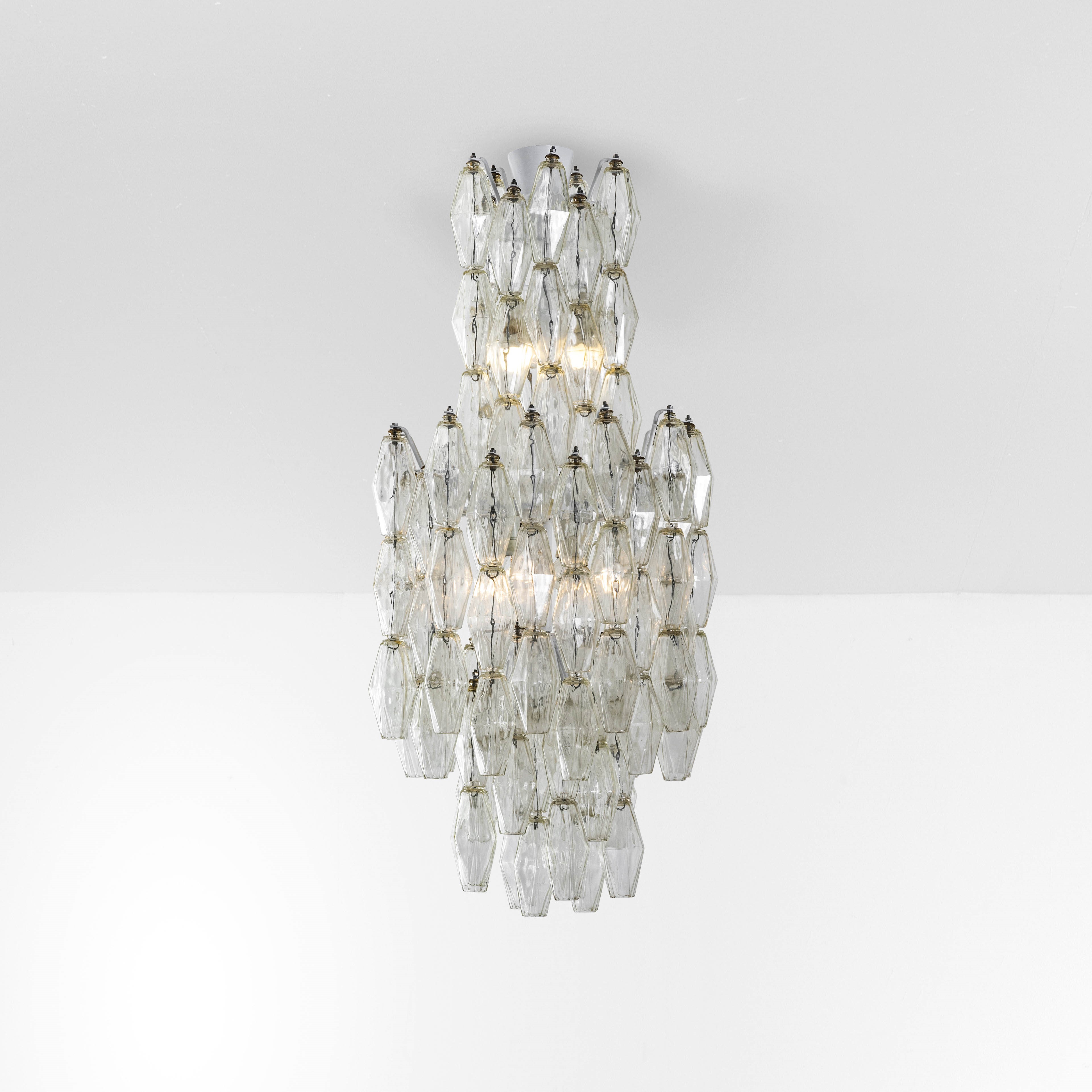 Struttura in metallo laccato. Elementi diffusori in vetro di Murano della serie poliedri.
