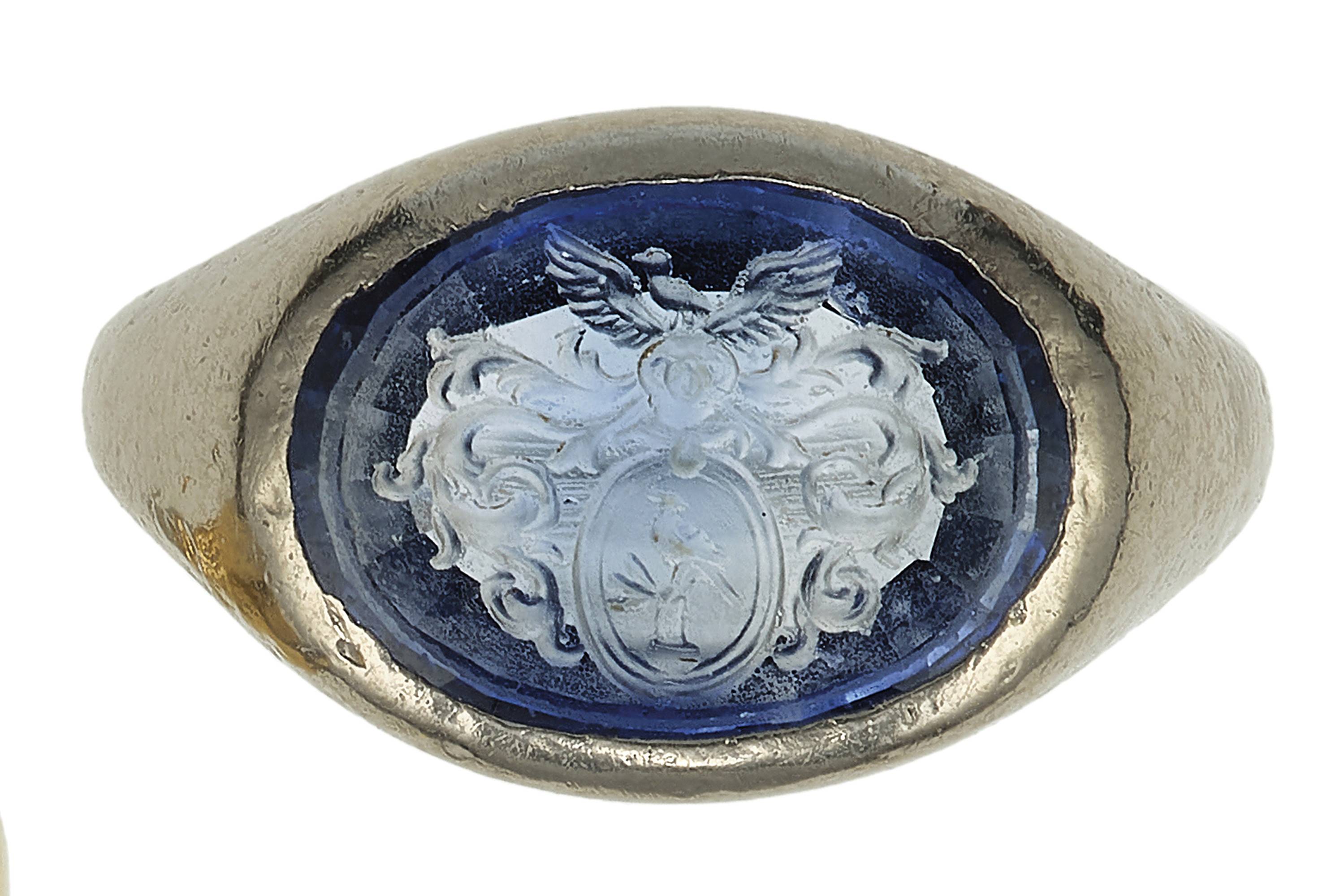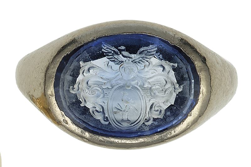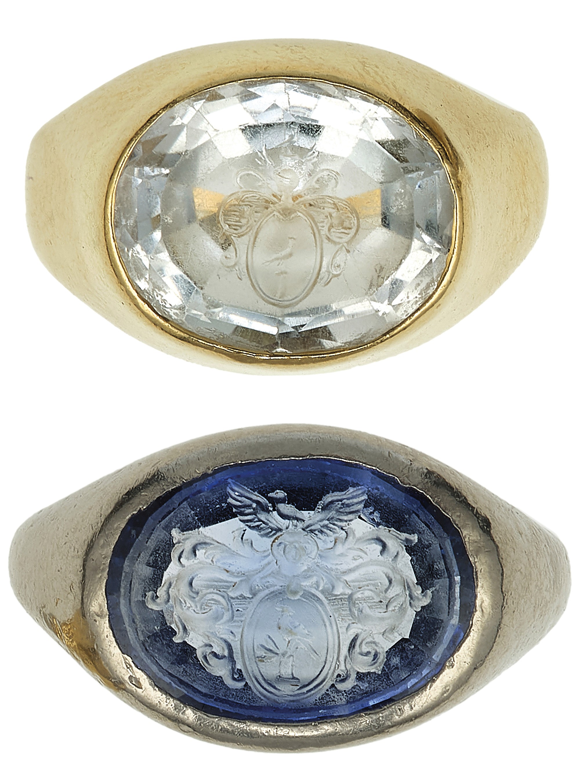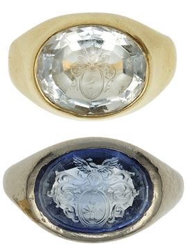 Coppia di anelli con stemma su pasta vitrea