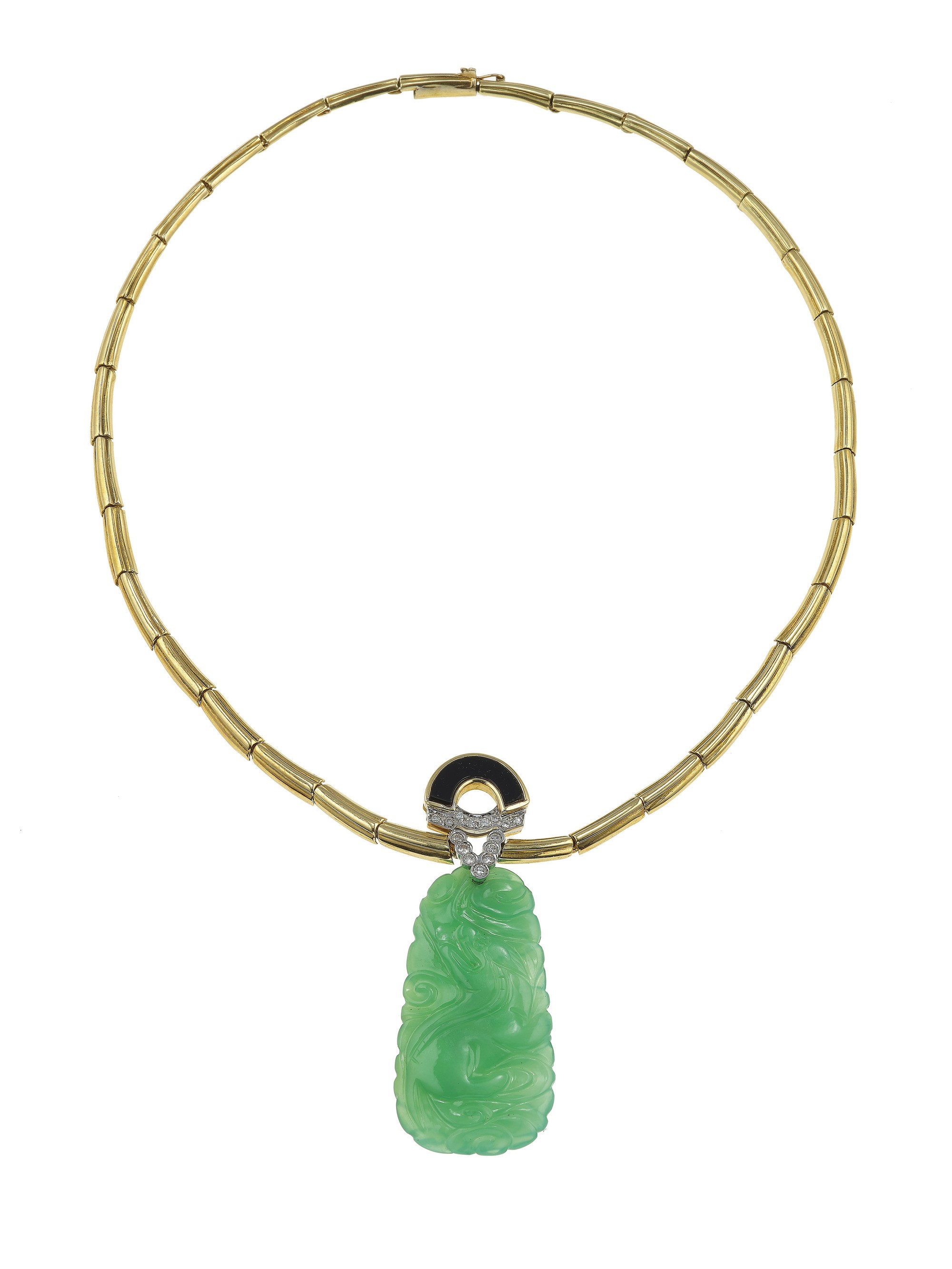 Dyed chalcedony, enamel and diamond necklace