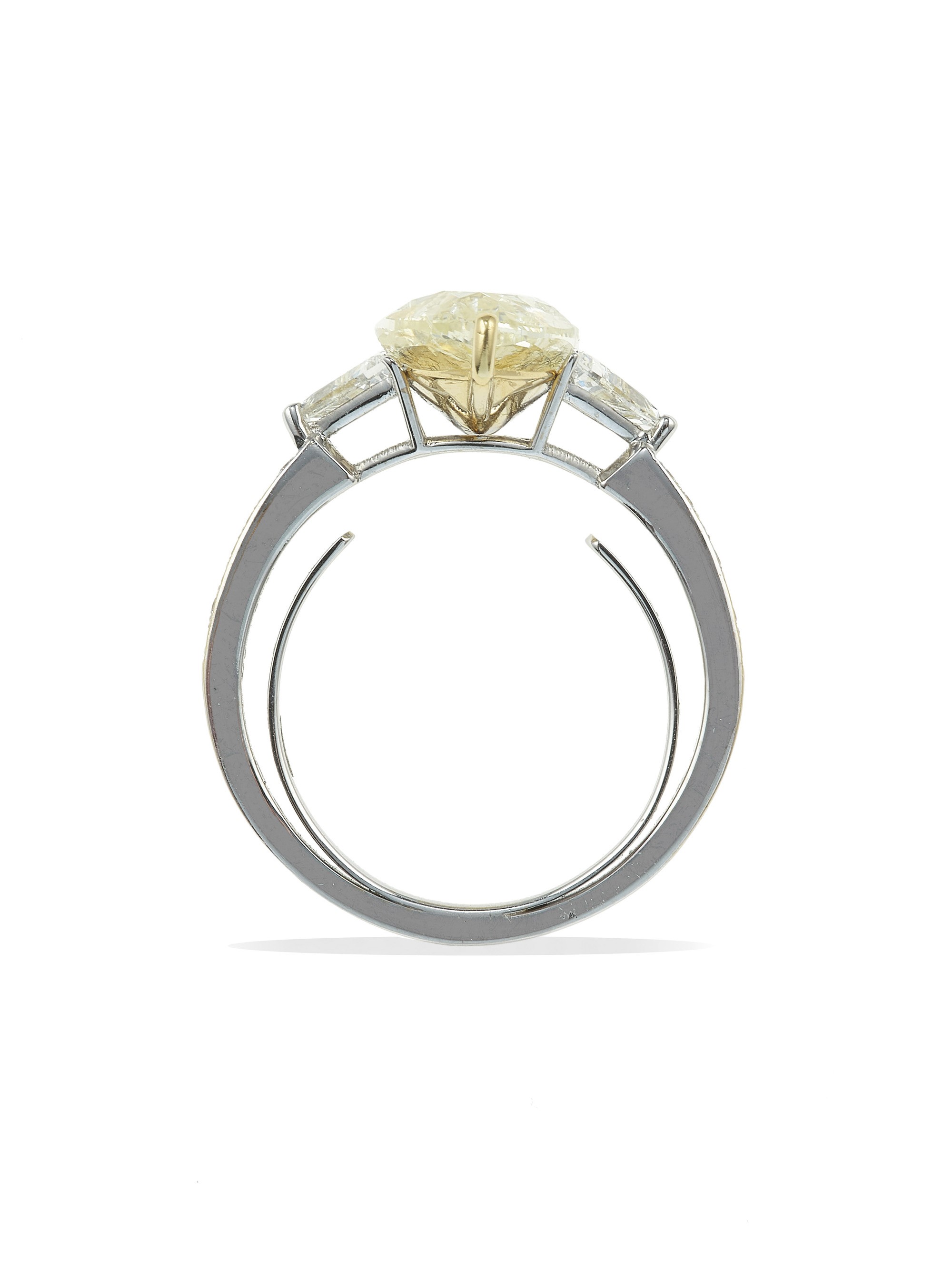 Natural fancy light yellow diamond weighing 5.08 carats and gold ring