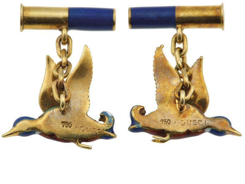 Pair of enamel and gold cufflinks. Signed Gucci. Fitted case