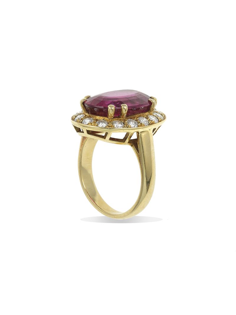 Rubellite and dimaond cluster ring