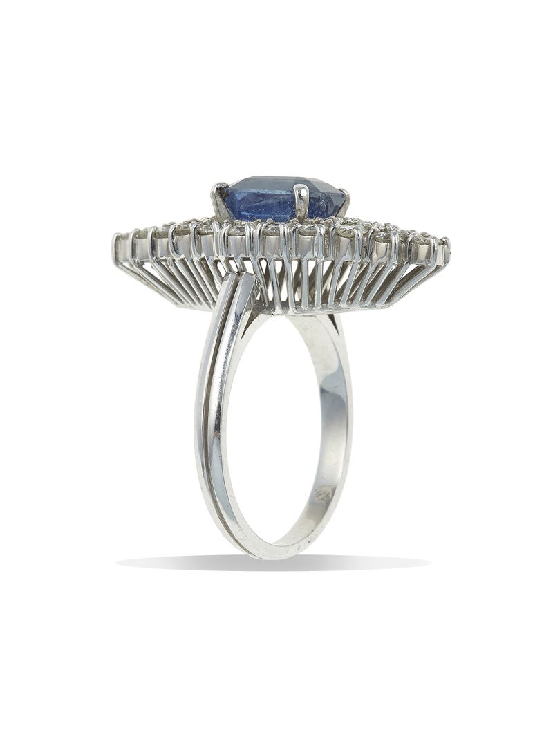 Sapphire, diamond and platinum ring
