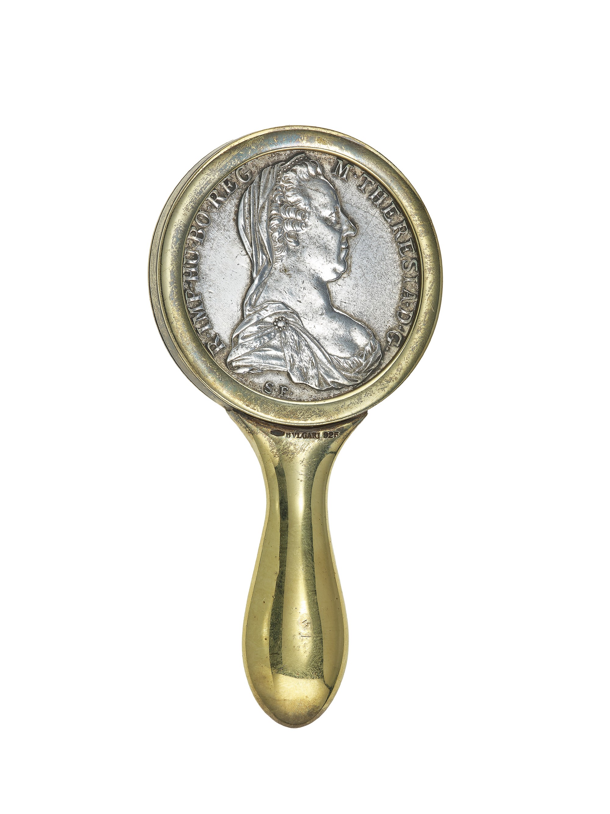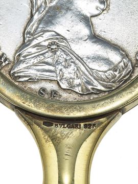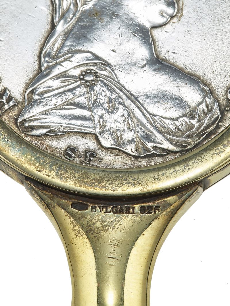 Silver and sterling lady's accessories. Hand mirror signed Bulgari