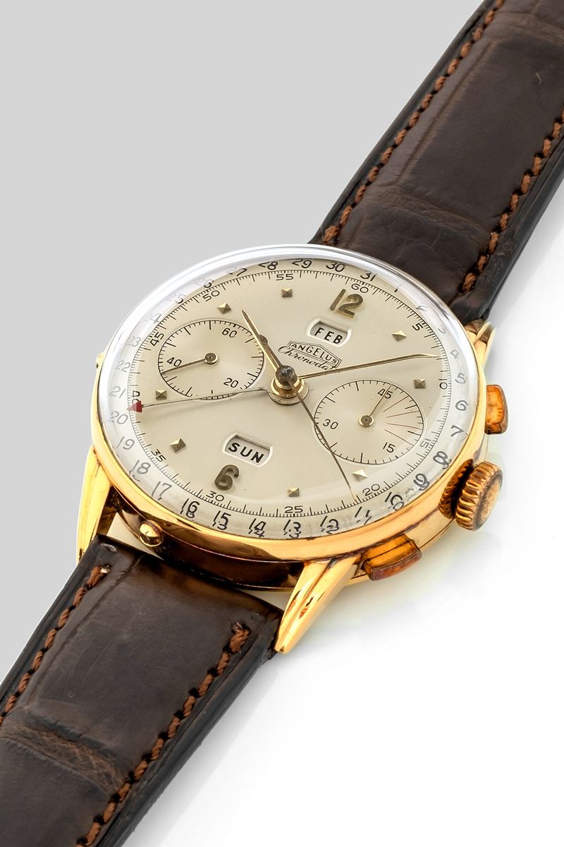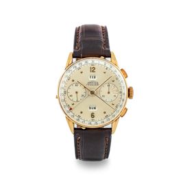 18k yellow gold chronodate, silvered dial with full calendar and chronograph, manual winding, circa 1950