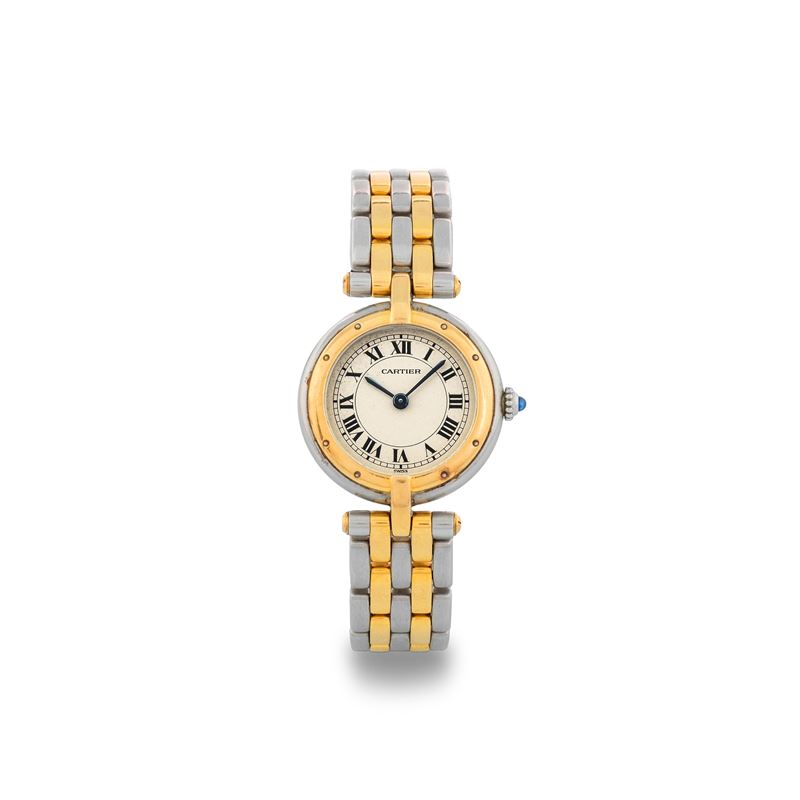 Panthere Ronde Lady steel and gold quartz movement, with original box and guarantee, circa 1990