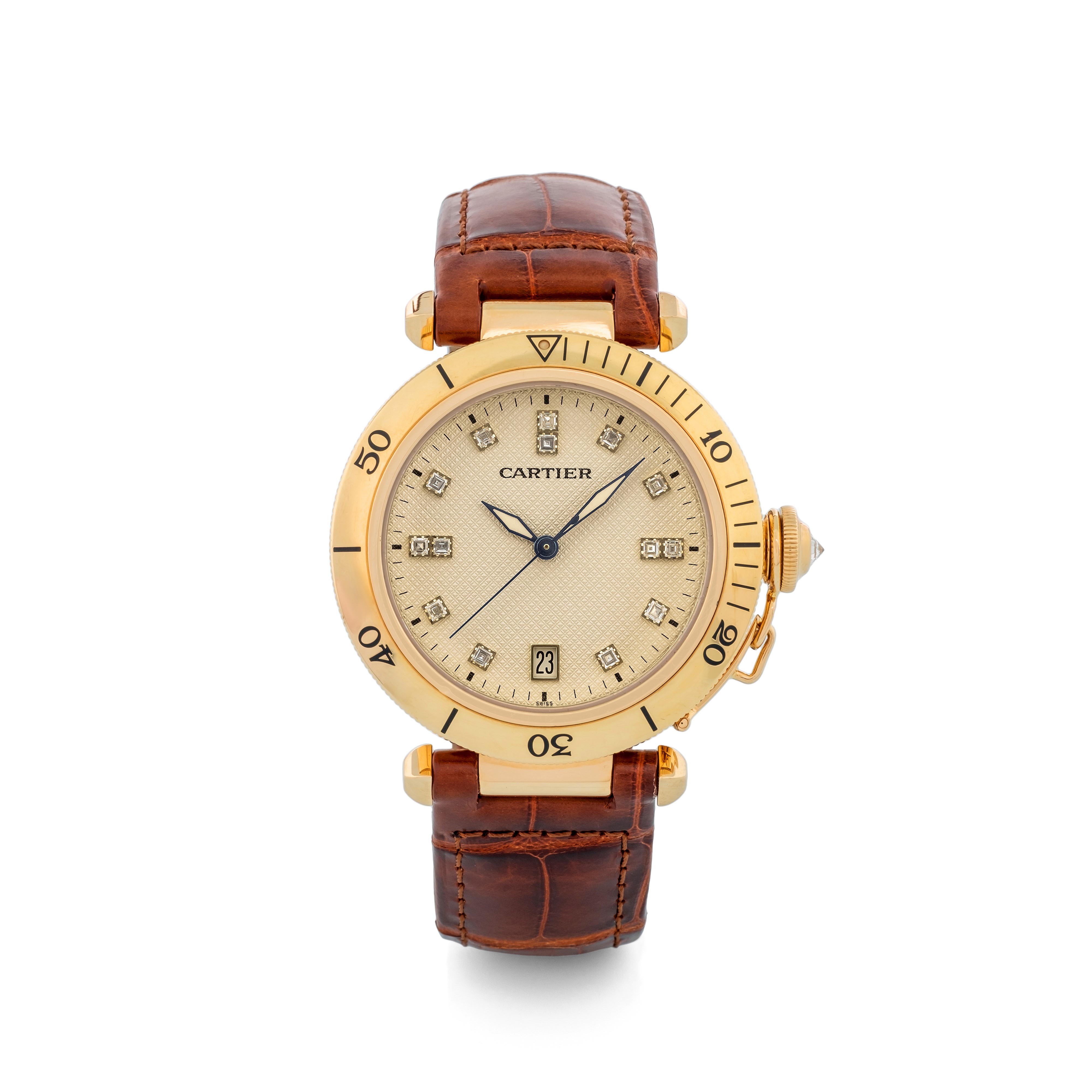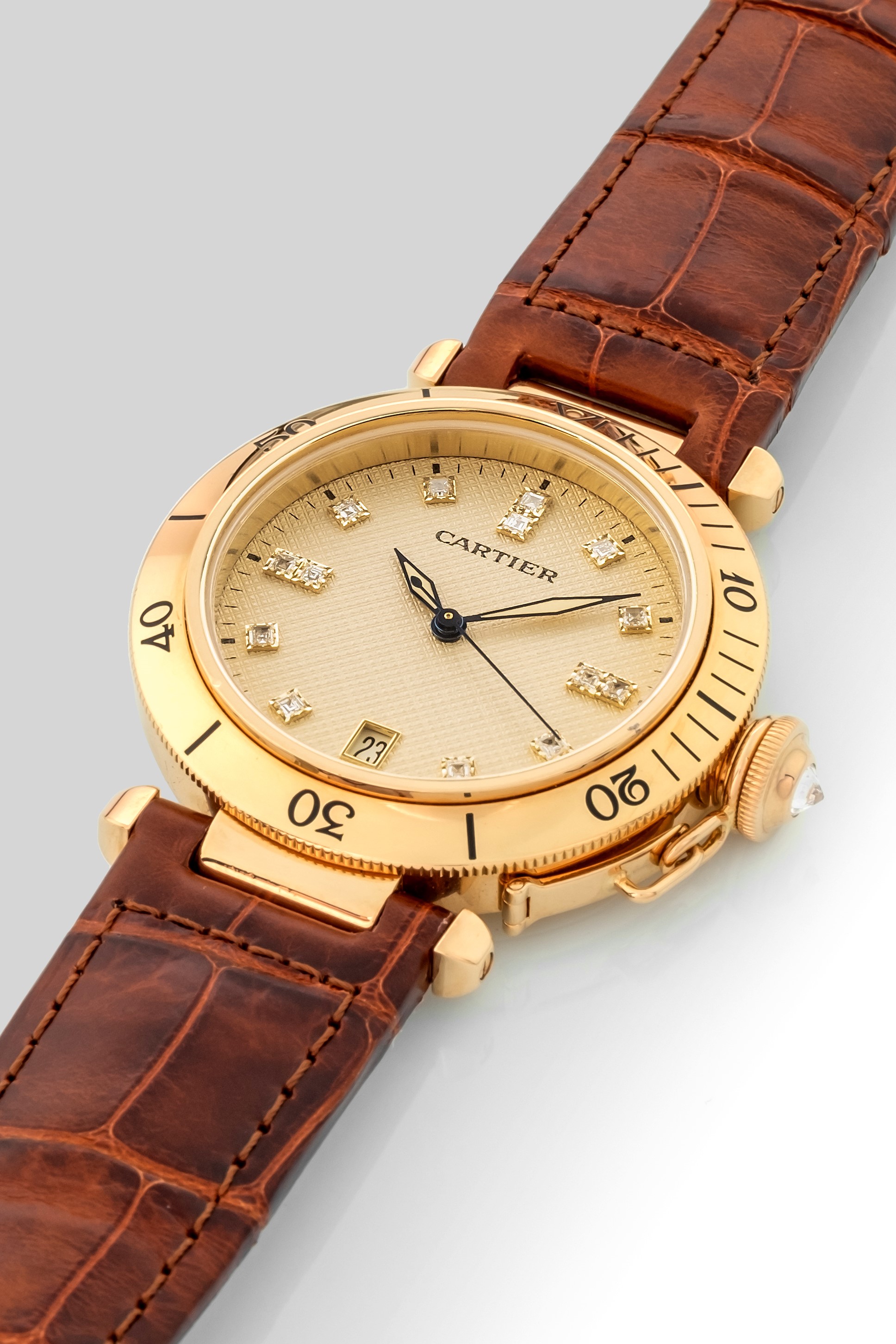 Pasha ref 1027 in yellow gold, diamond dial, automatic, circa 1980