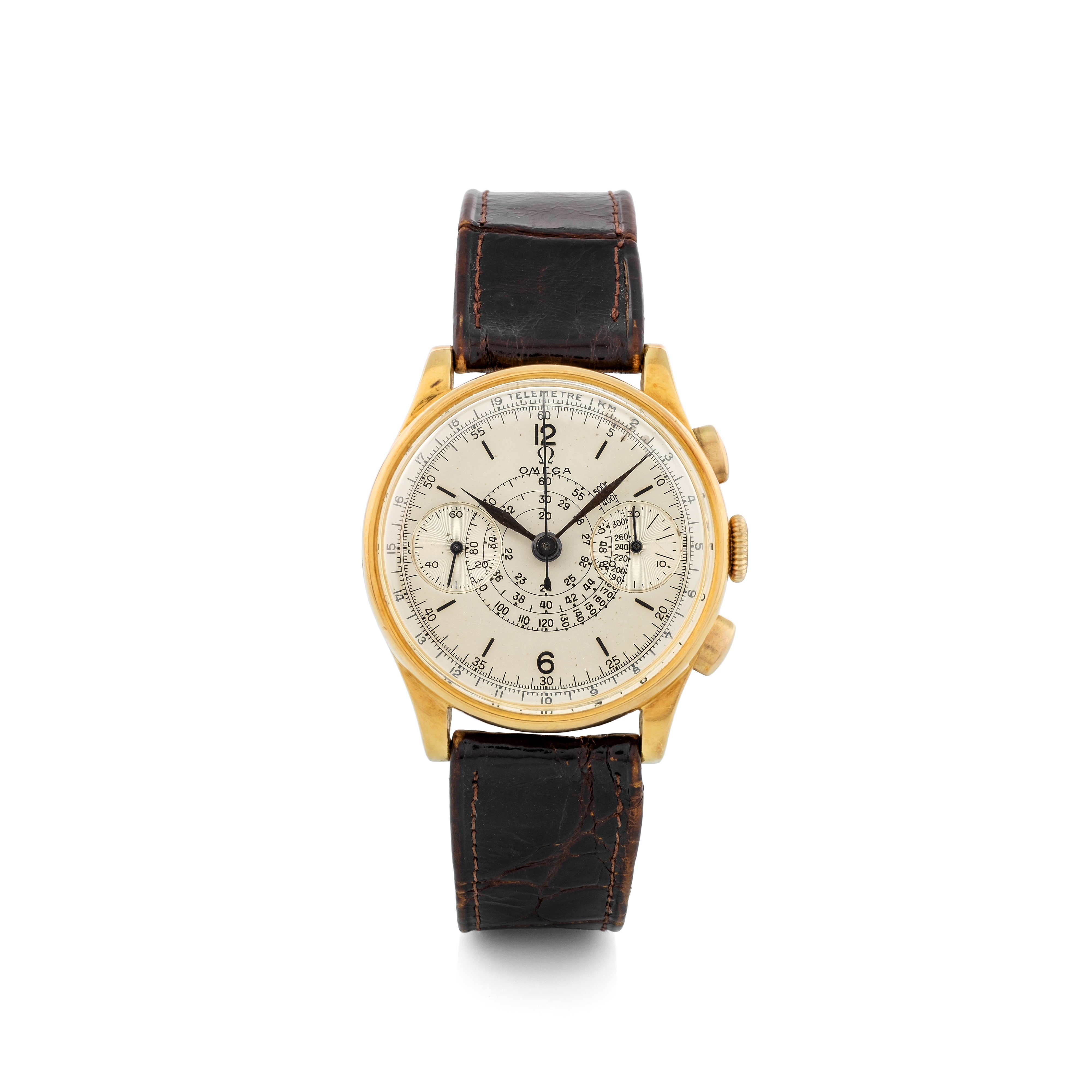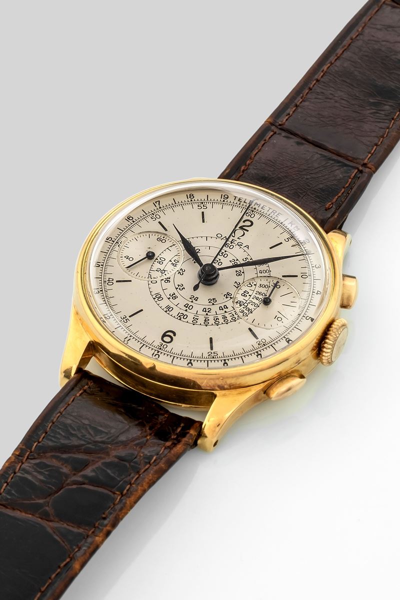 Chronograph cal 33.3 in 18k yellow gold, snailed tachymeter scale, circa 1945