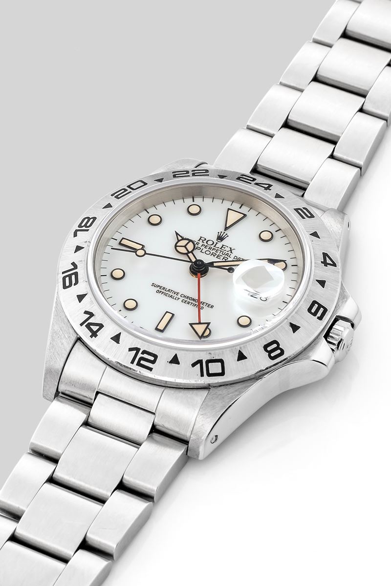 Rolex's Explorer II Reference 16550 replaced the much-loved Reference 1655, which was a modernised version of the brand's historic Explorer wristwatch line. The unique design was originally intended for speleologists with a fixed, engraved bezel calibrated to 24 hours and an additional 24-hour hand that allows the wearer to easily know the exact time by distinguishing between day and night.