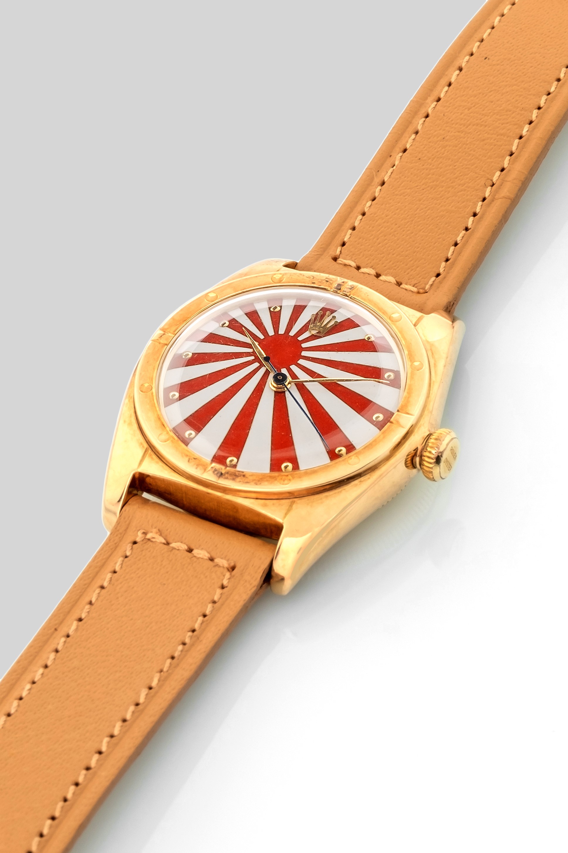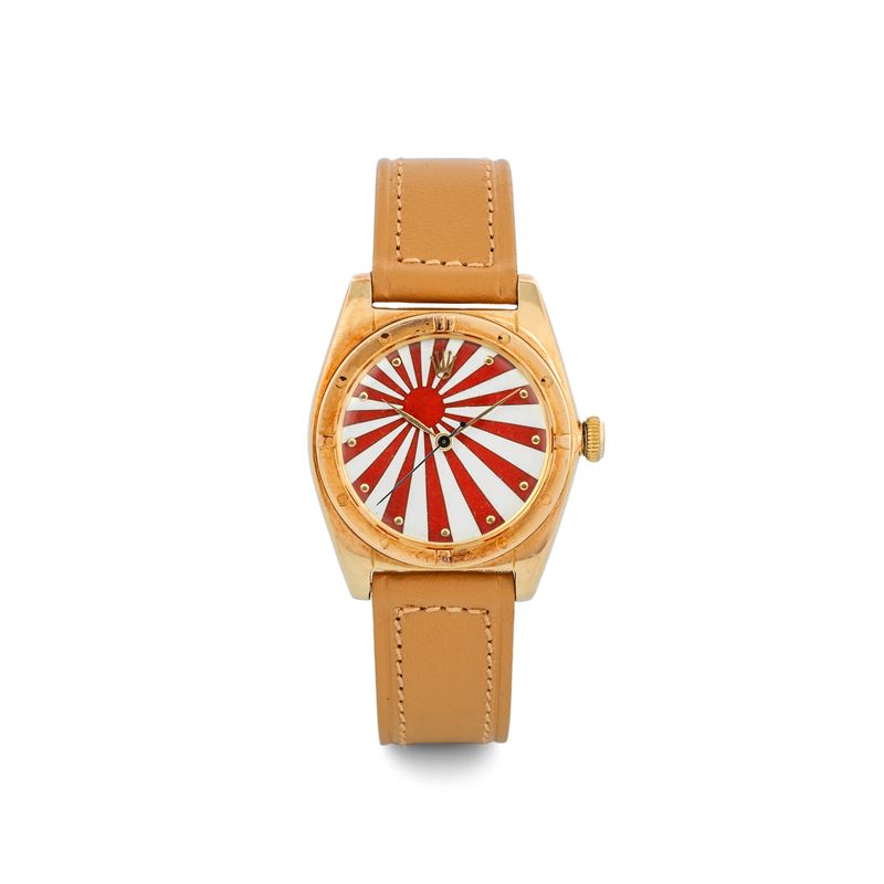 Ovetto ref 5015 with handcrafted vintage enamel dial depicting the Japanese flag, circa 1948