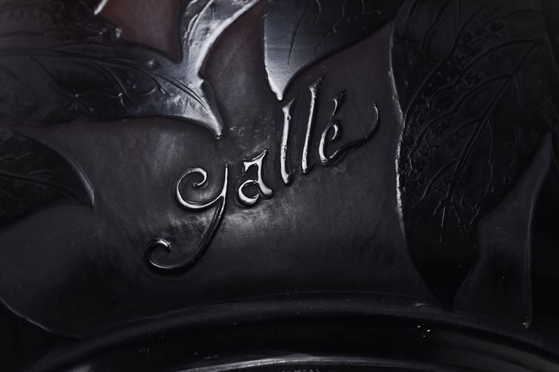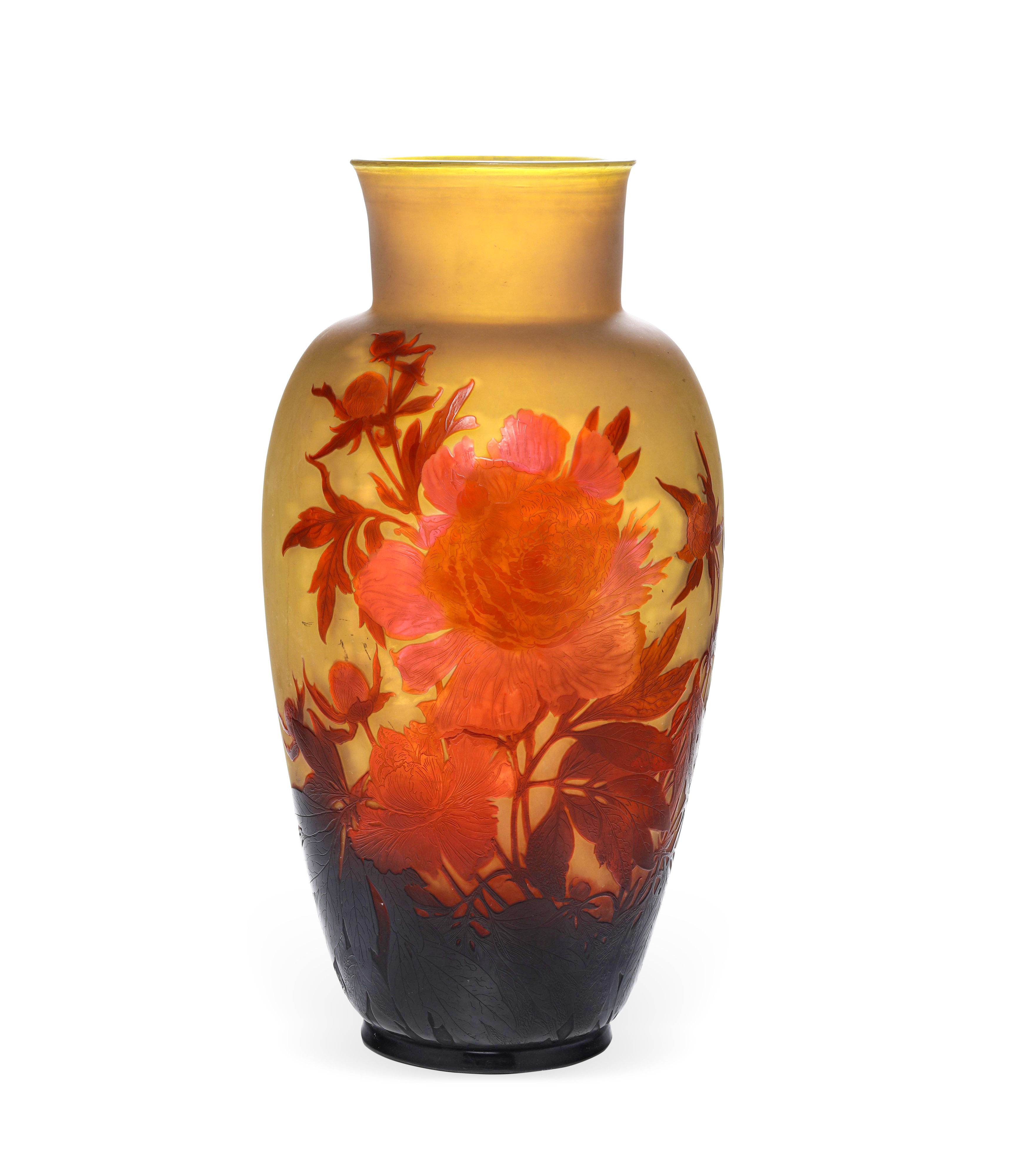 Grande vaso a balaustro in vetro a cammeo con decoro di peonie.