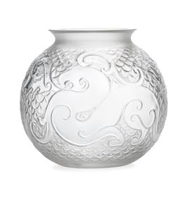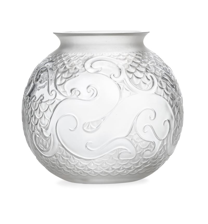 Vaso Xian Dragon a sfera con collo svasato in cristallo stampato con decoro di dragone stilizzato.
