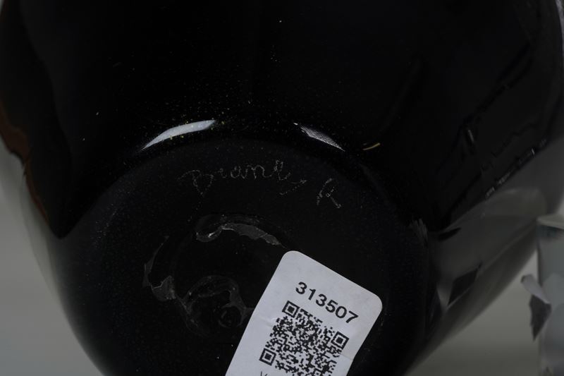 Vaso in forma di goccia rovesciata in vetro sommerso con inclusione di foglia oro.