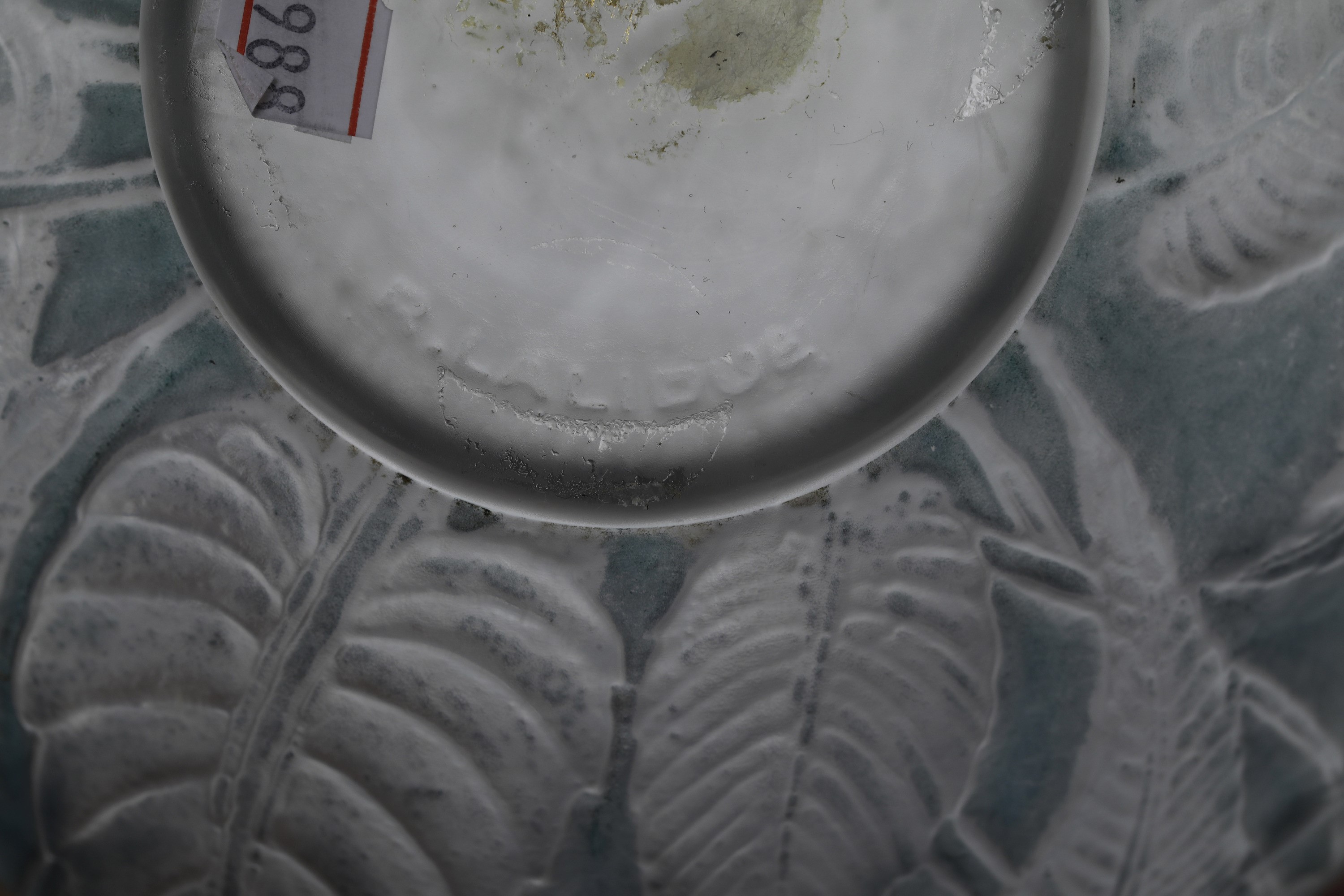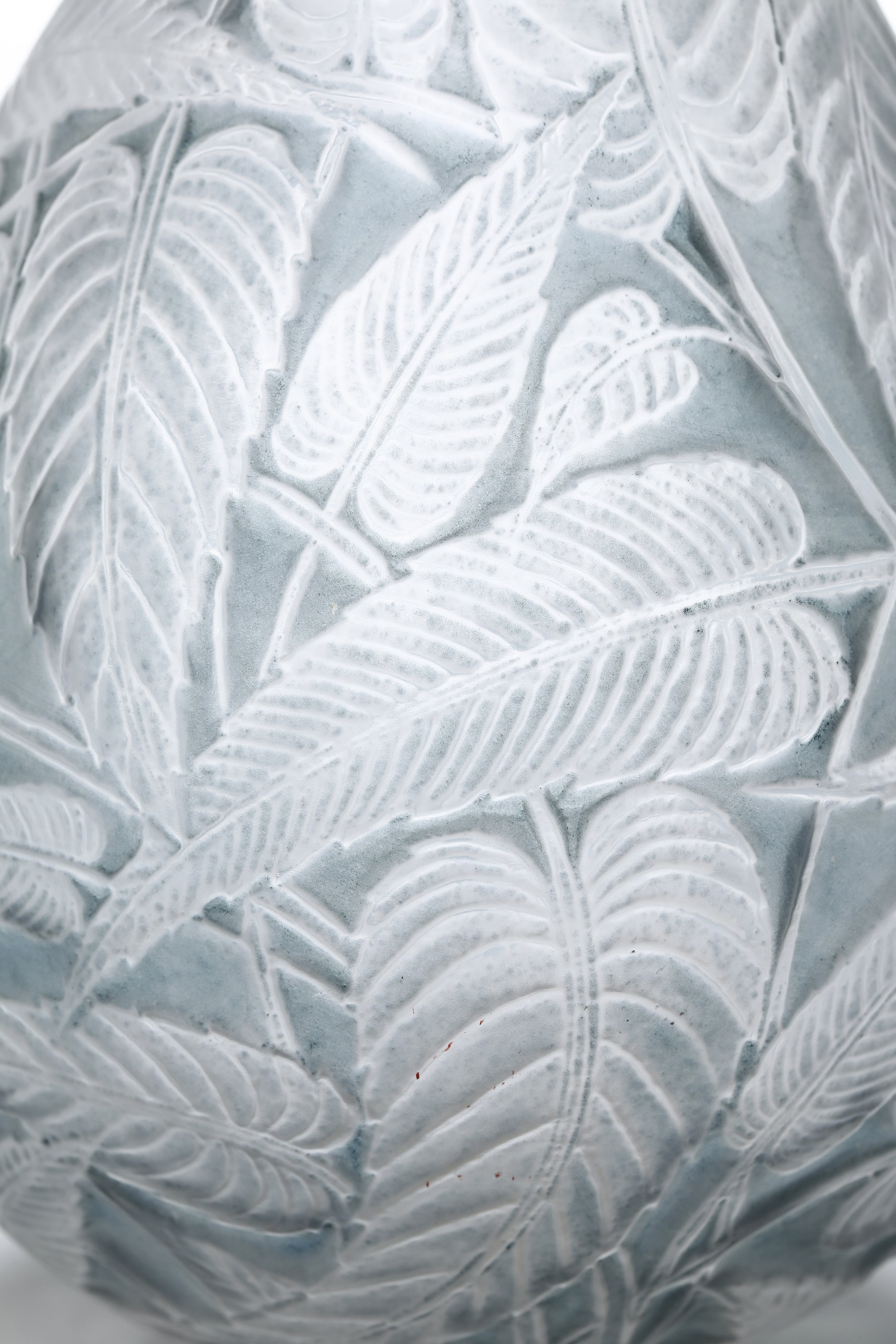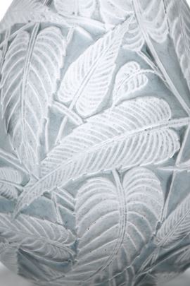 Vaso Sauge a goccia in cristallo stampato con decoro di fogliame su fondo patinato.