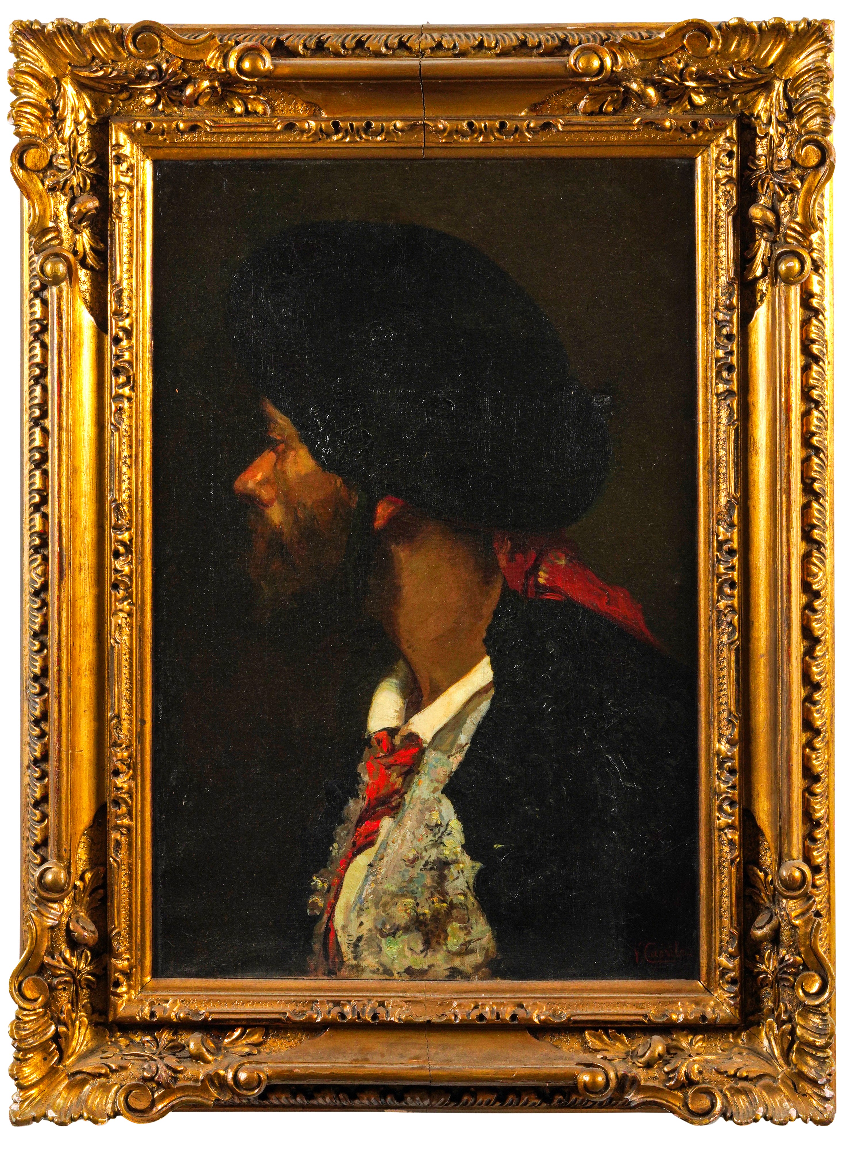 Scuola napoletana del XIX-XX secolo Ritratto di uomo con cappello