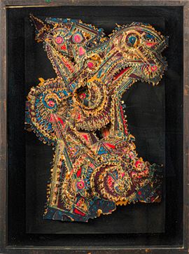 tecnica mista su cartone colorato inciso, sbalzato e strappato applicato su legno, cornice originale