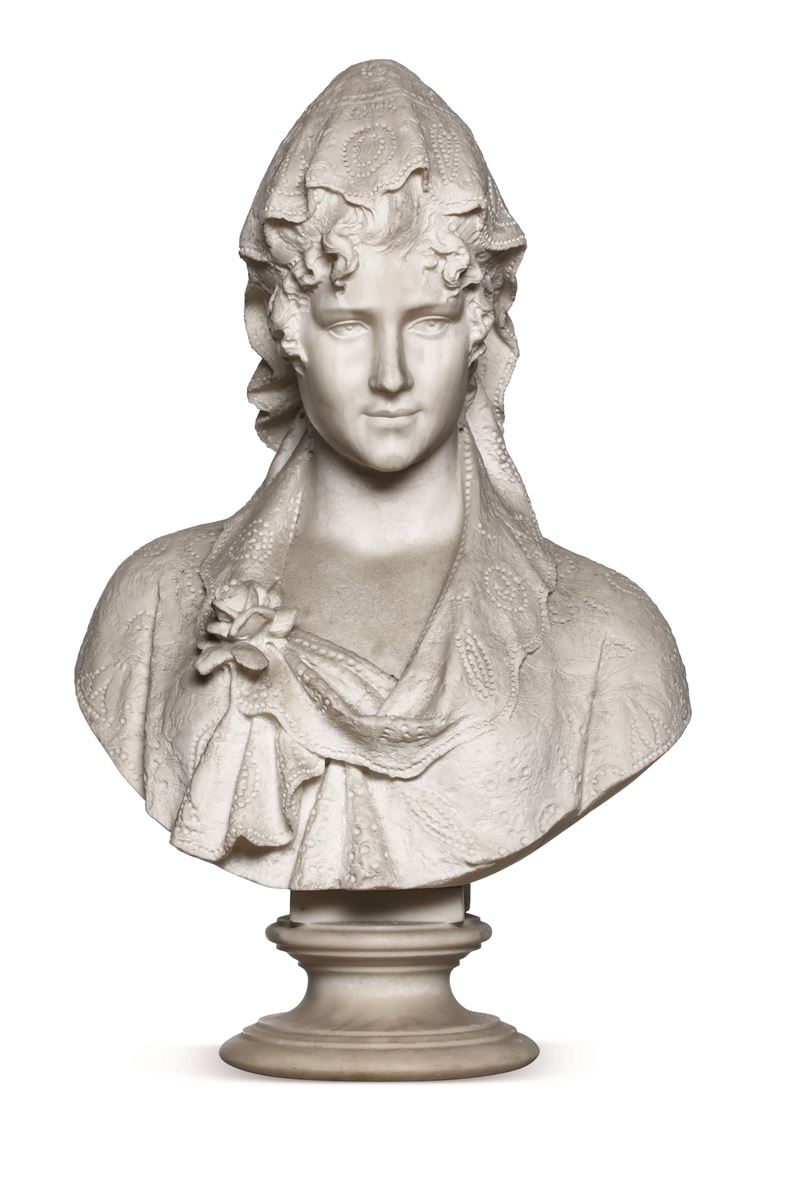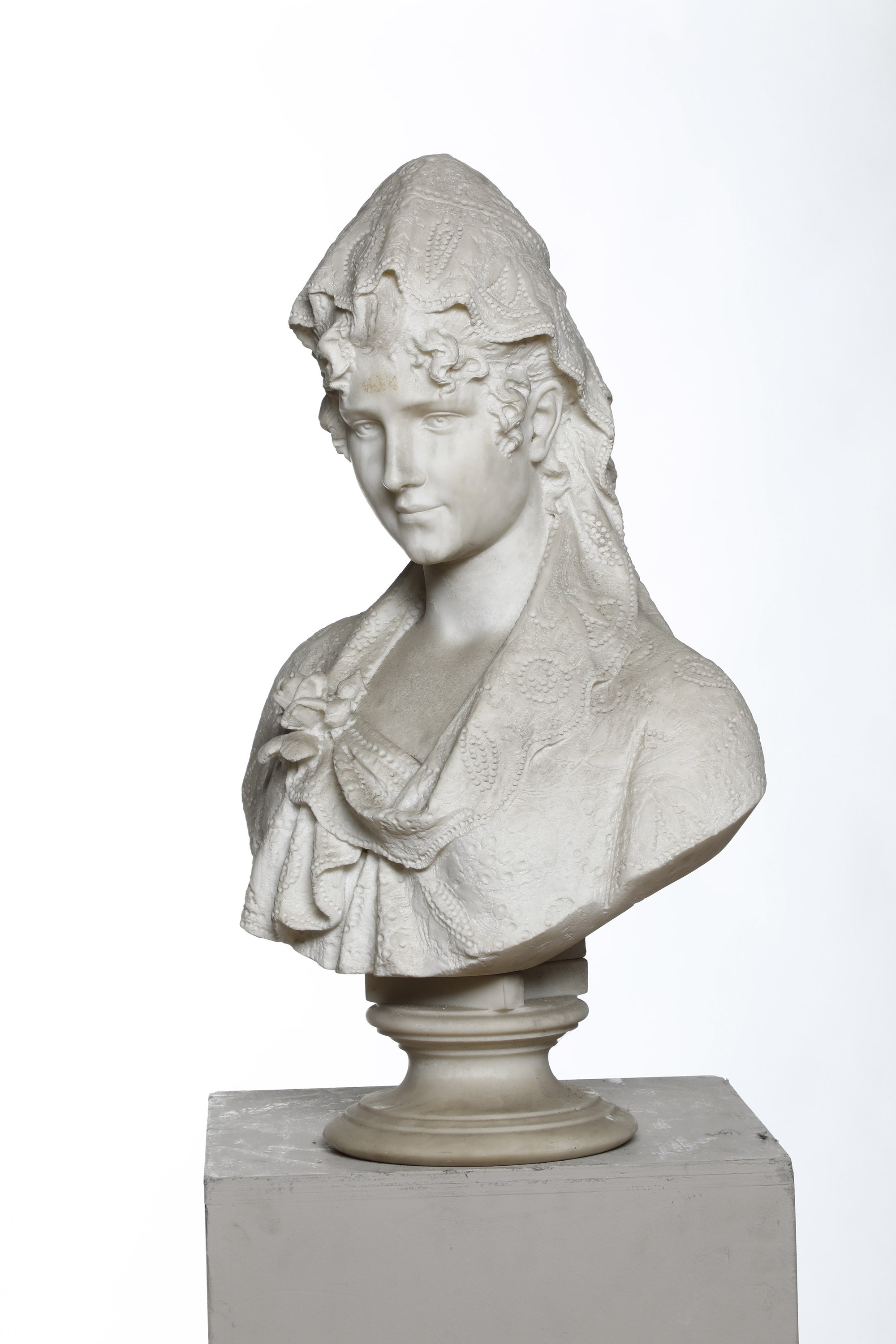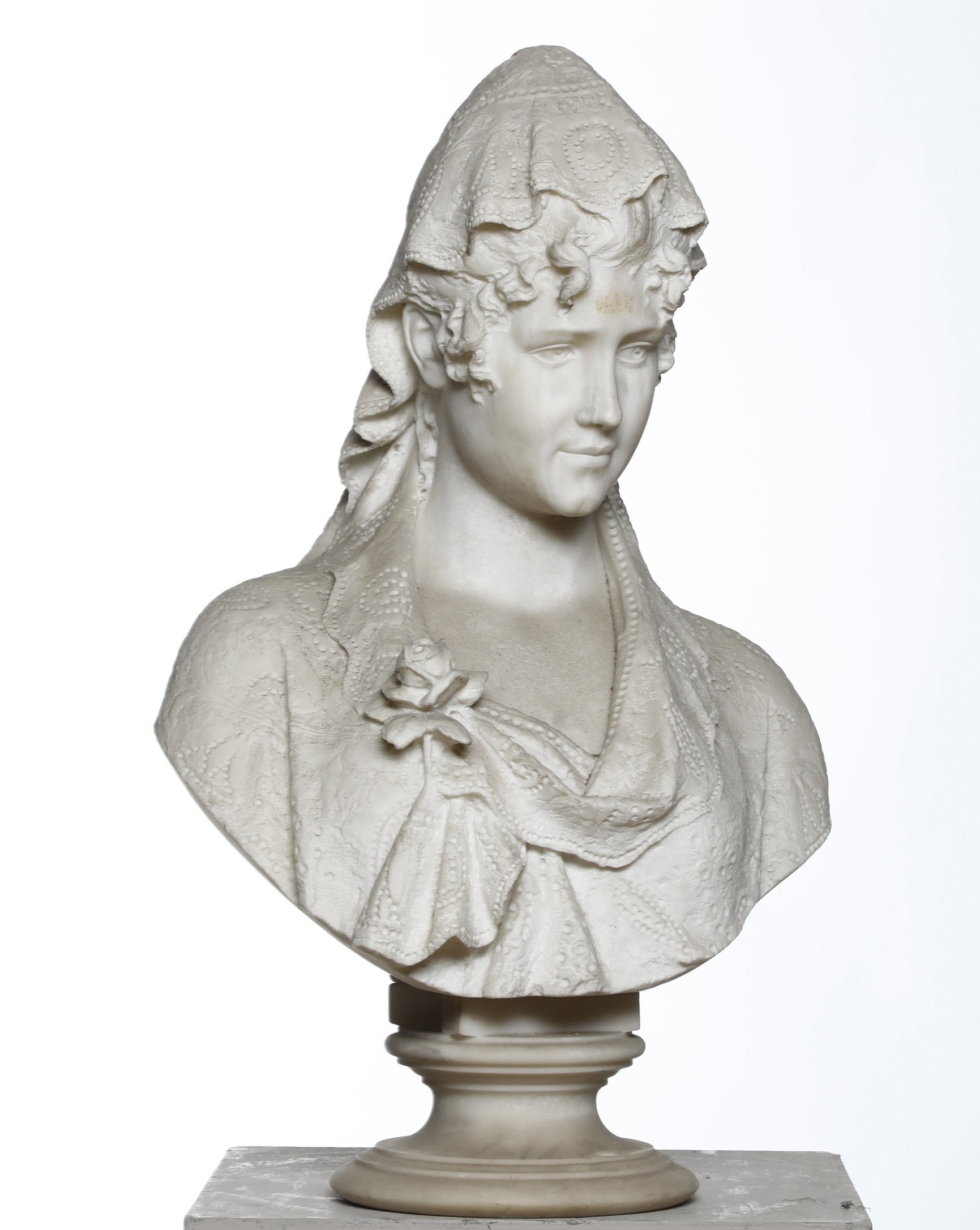 Busto femminile con velo di pizzo