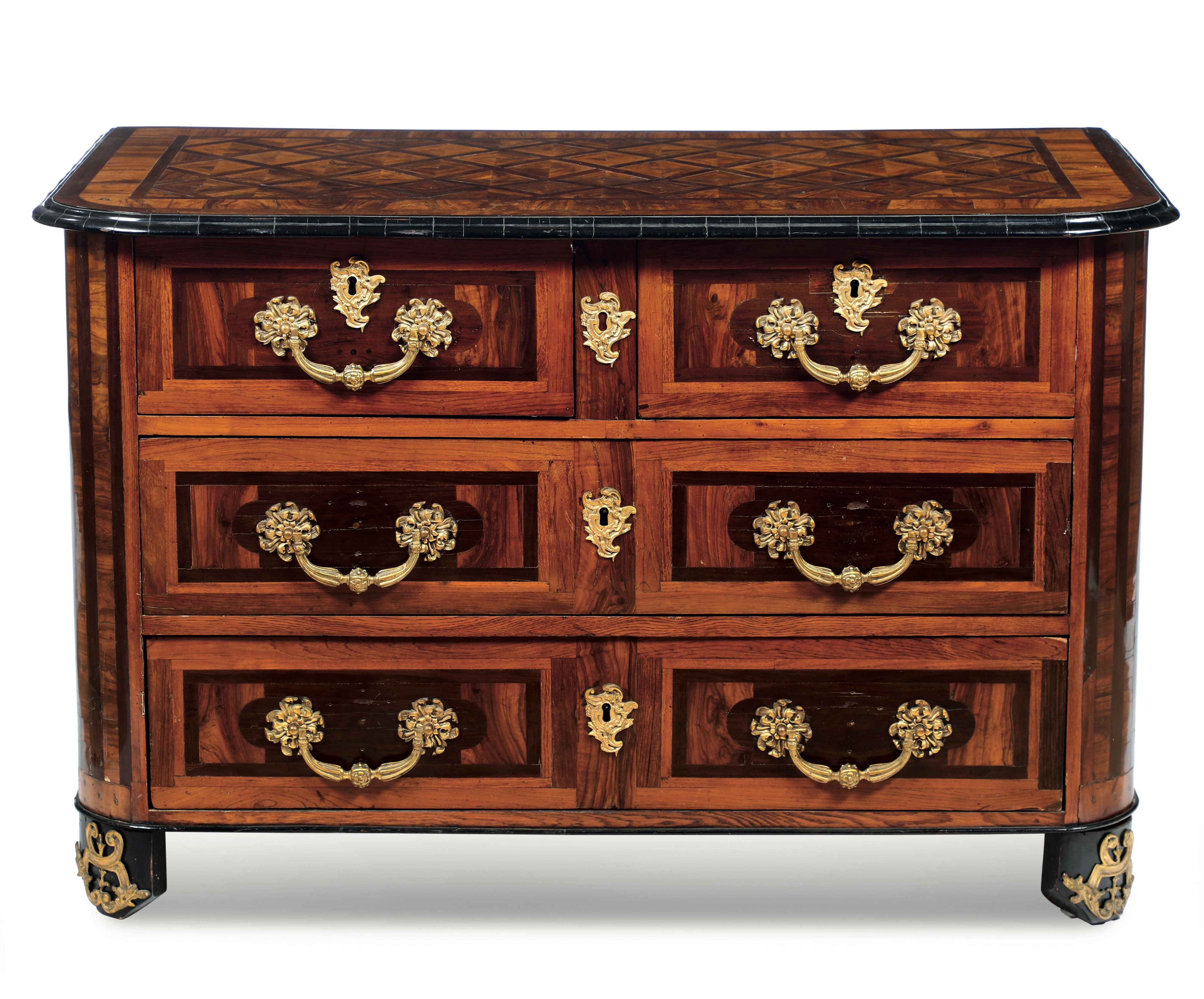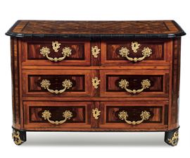 Commode lastronata e intarsiata. Francia, XVIII secolo