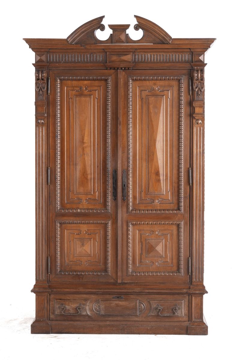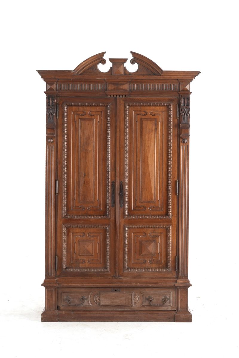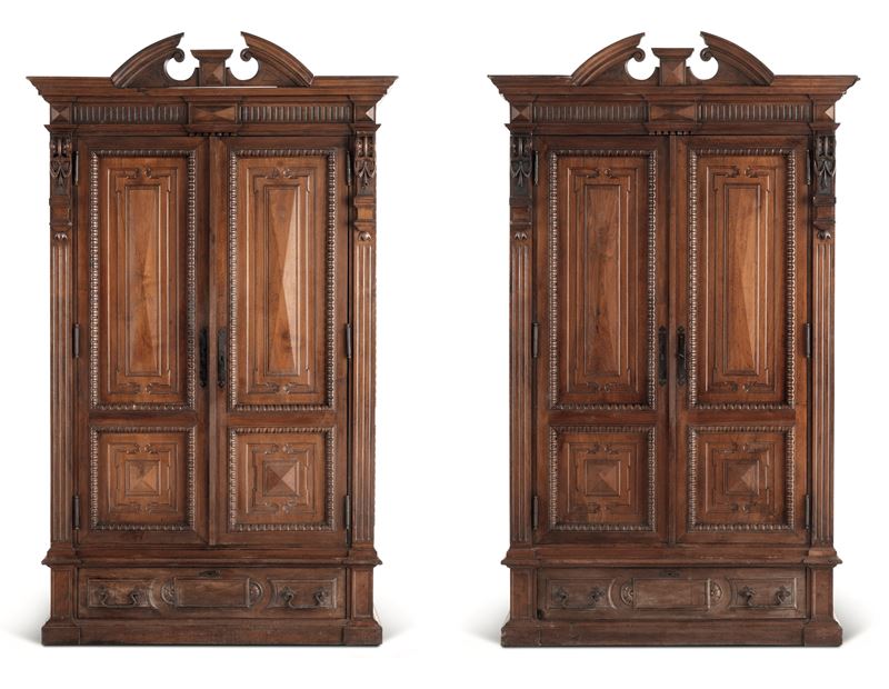 Coppia di armadi umbertini in legno intagliato. Fine del XIX secolo