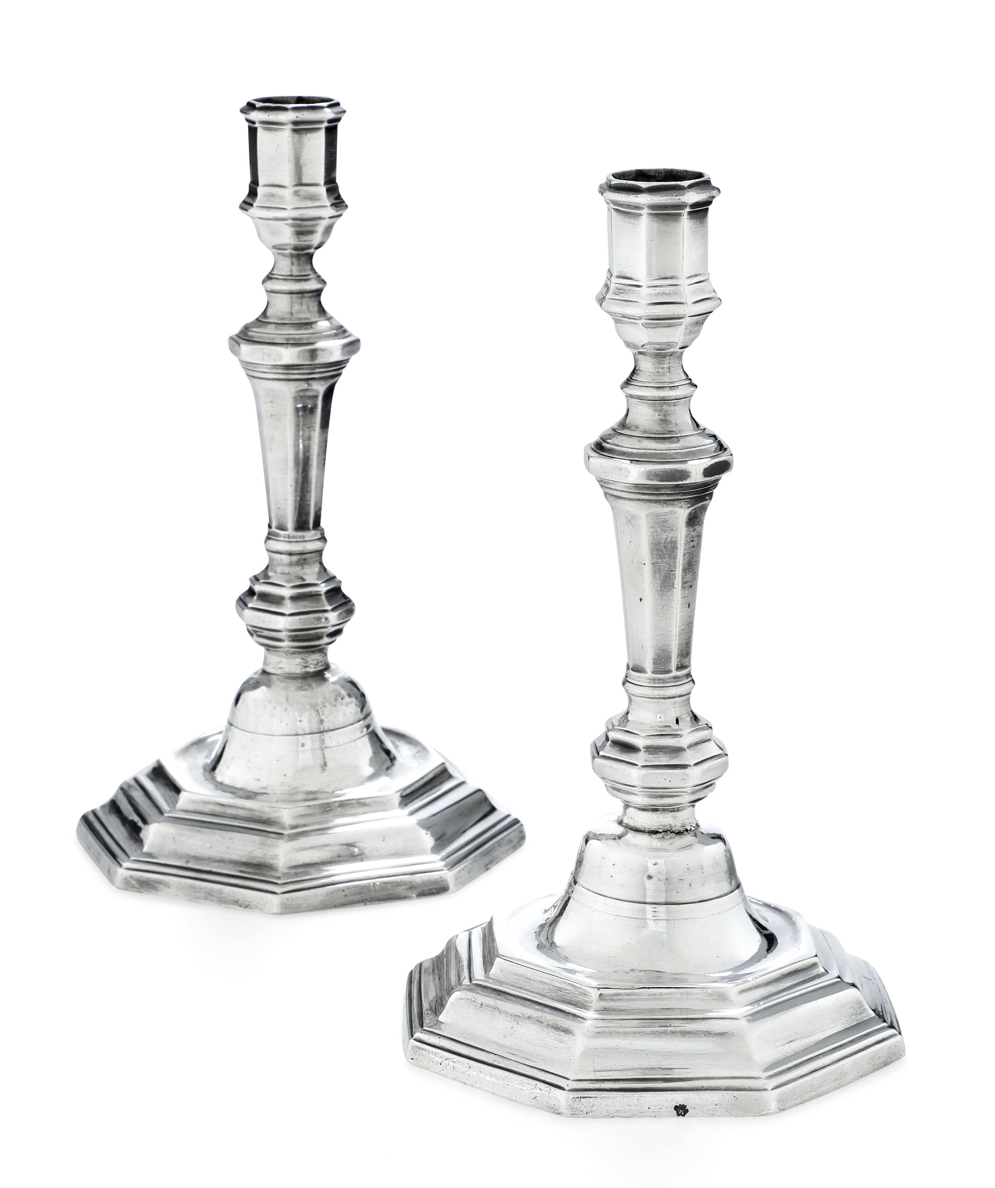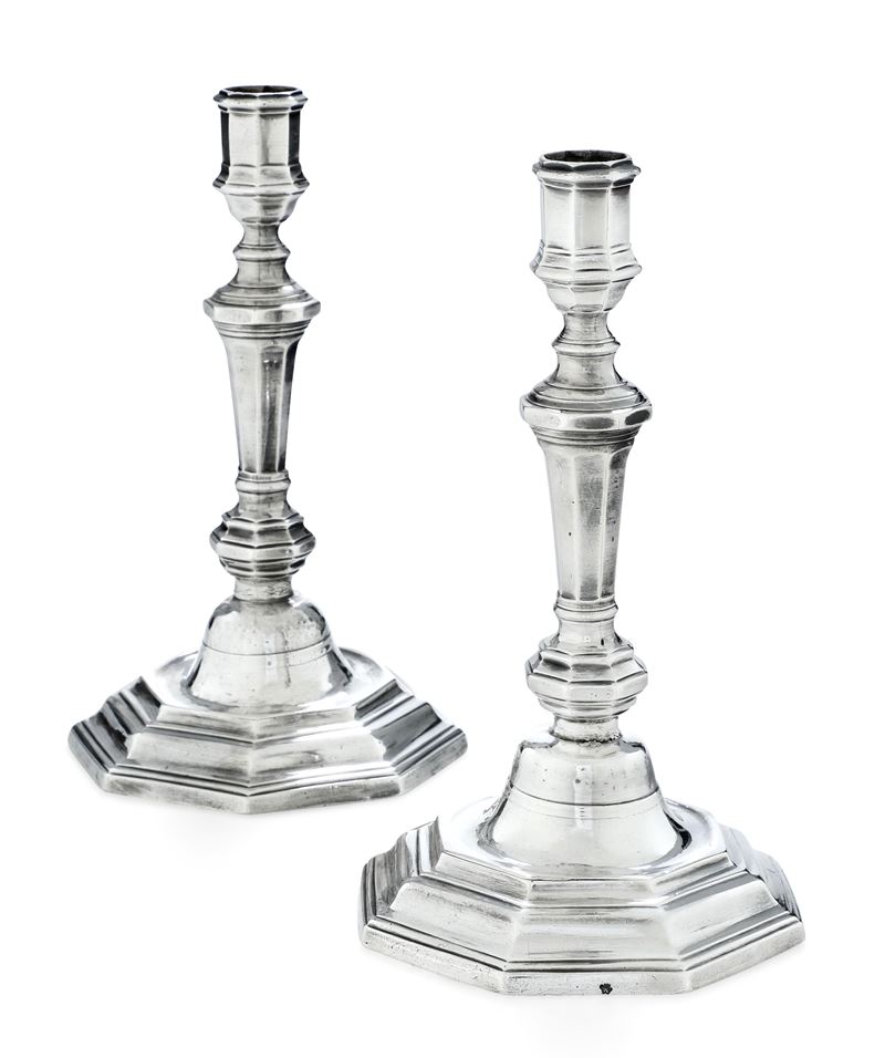 Coppia di candelieri. Parigi prima metà del XVIII secolo (1727-1732), argentiere Gabriel Joseph Miollet (1706-1752)