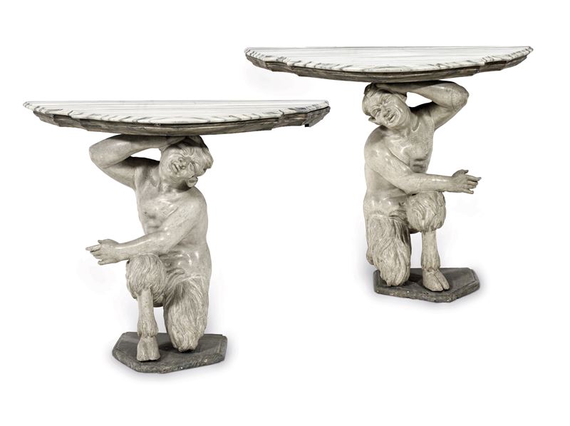 Coppia di consolles scolpite. Genova, XVIII secolo
