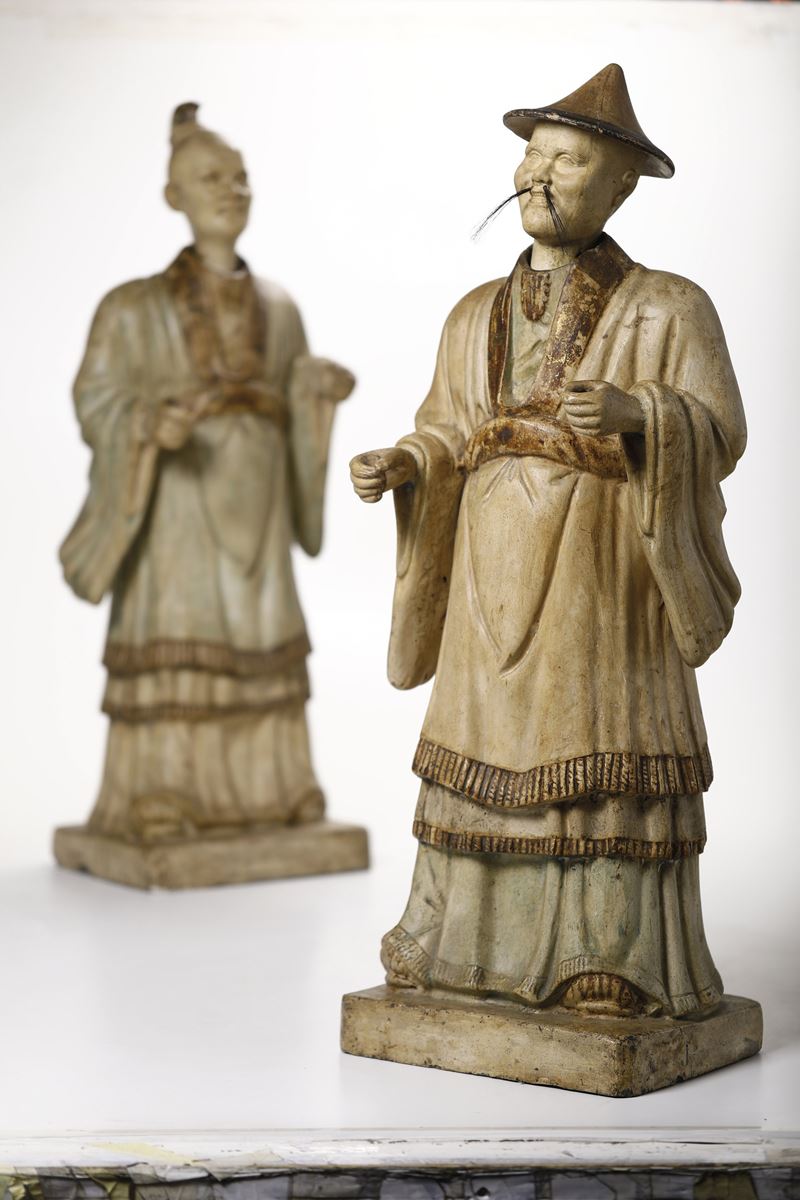 teste basculanti con pesi in piombo (mancanti della policromia originale)