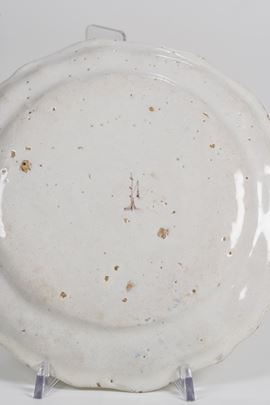 Maiolica. Marca: lanterna in manganese. Diametro cm 22,5. Conservazione: ottima; piccolo intervento di restauro al bordo di un piatto